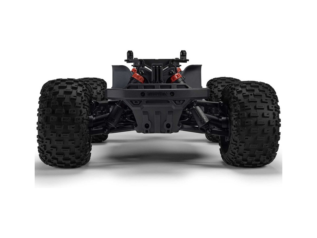 Není lepší způsob jak začít vaše off-roadové jízdy, než s tímto působivým Monster truckem, který lze navíc později snadno upgradovat na střídavý pohon, díky převodovce připravené na výkon 3S LiPo a diferenciálům s kovovými planetovými převody. Pro zvládnutí zvýšeného výkonu je místo klasické kluzné spojky instalována speciální spojka proti přetížení. Terénní zavěšení kol a olejem plněné tlumiče výborně absorbují nerovnosti. Můžete upravit světlou výšku pomocí podložek pod pružiny pro skoky a jízdu v hrubé terénu. V terénu i na asfaltu poskytují pneumatiky dBoots Fortress MT úžasnou trakci.