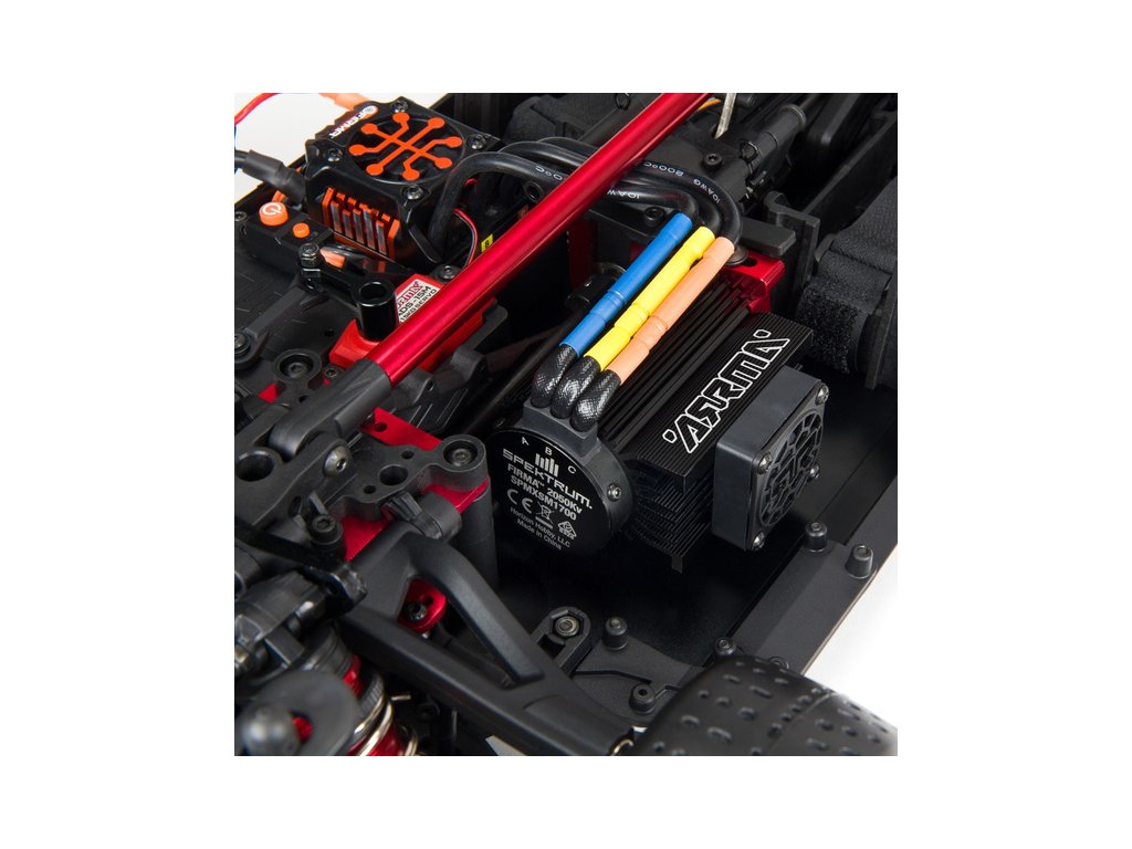 RC model auta Arrma Infraction, v provedení Street Bash pro jízdu na šotolině, trávě a tvrdých površích, rychlostí až 120 km/h. Model je snadno říditelný díky elektronické stabilizaci AVC. Elektronika Spektrum Smart. Speciální ruční brzda pro driftování.