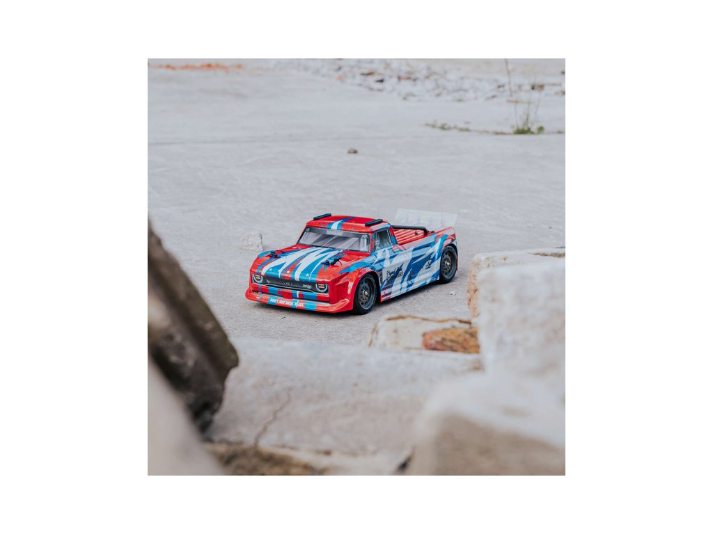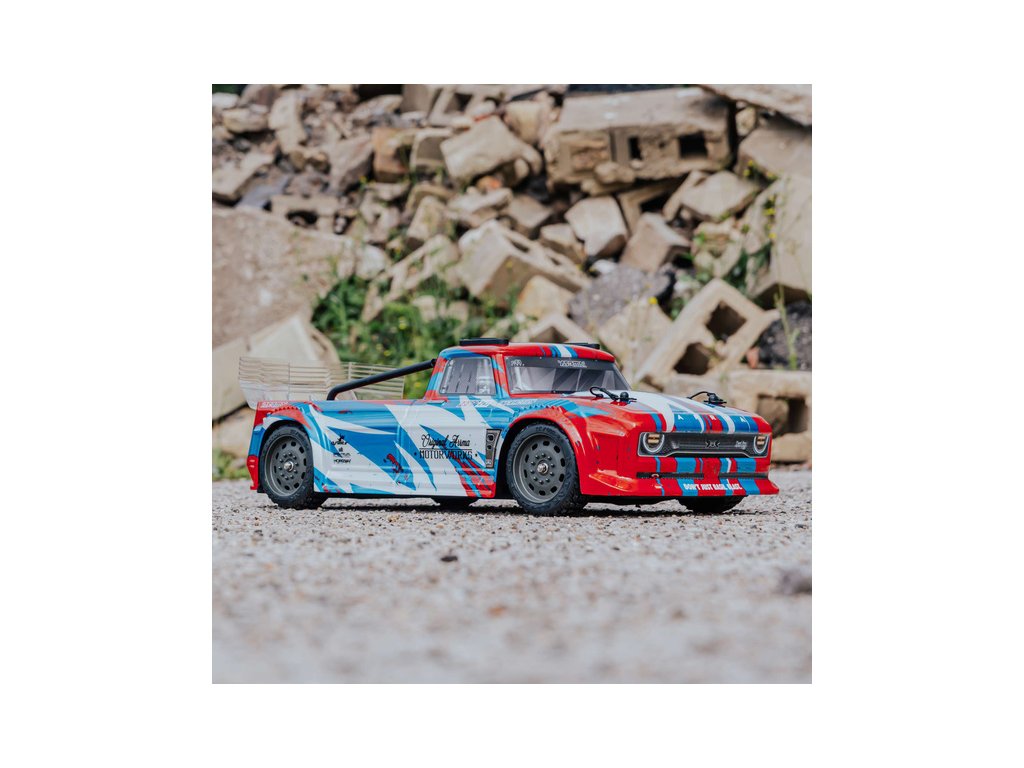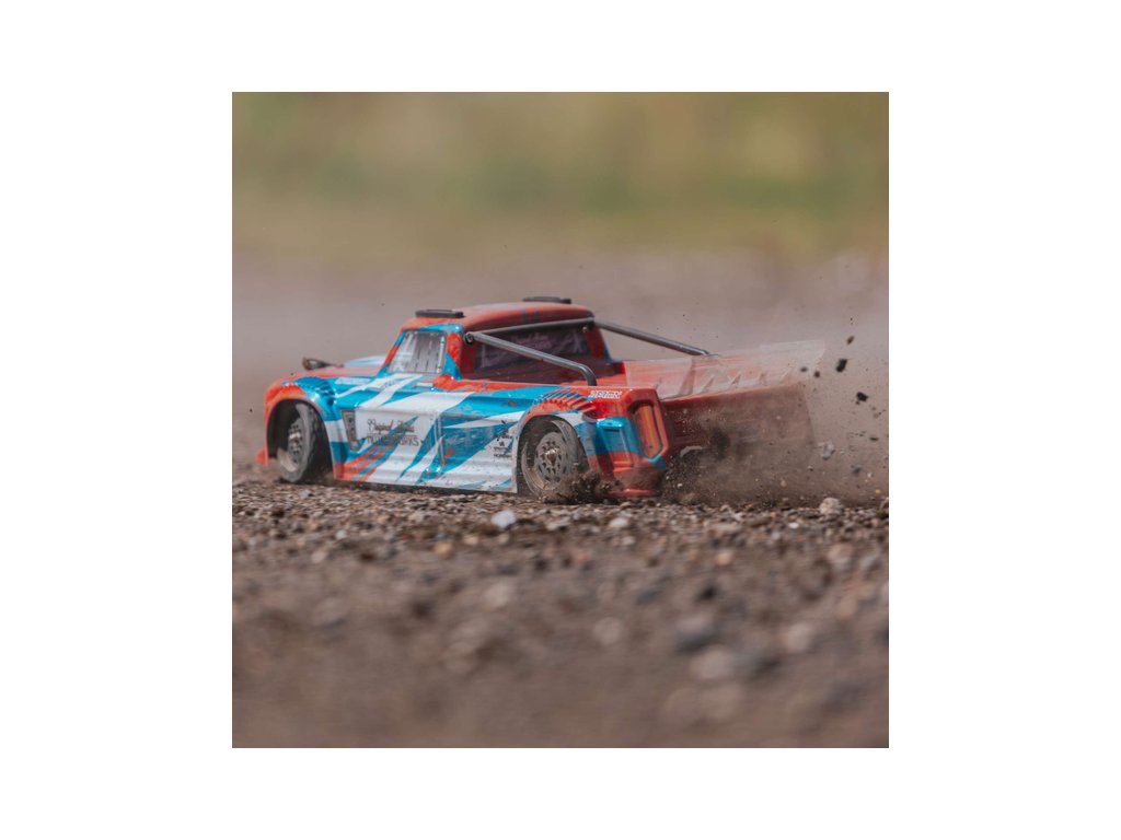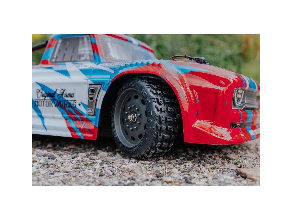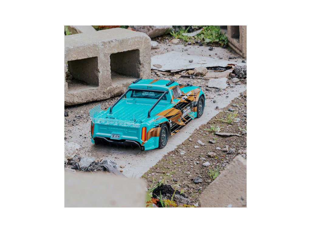 Podvozek doplňuje ohromující karoserie s potiskem v červené/modré nebo modrozelené/bronzové barvě. Střešní ližiny a ochranné oblouky chrání karoserii před poškozením. ARRMA® INFRACTION® 4X4 MEGA Street Bash Resto-Mod Truck je dodáván s 7-článkovou 8,4V NiMH baterií Dynamite® a síťovým nabíječem. Stačí přidat 4 baterie „AA“ do vysílače a můžete vyrazit!