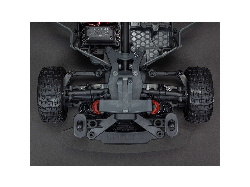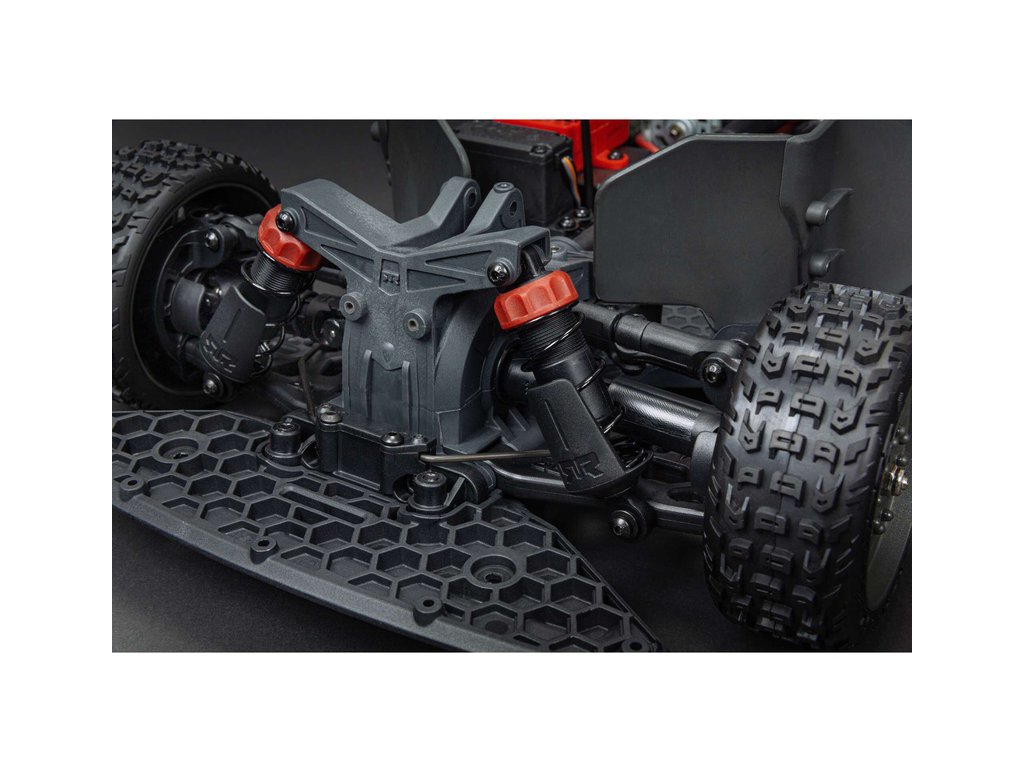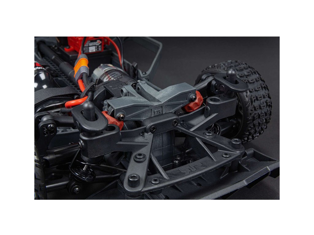 Pro přesné a spolehlivé ovládání vybavili inženýři ARRMA® tento vůz vysílačem Spektrum™ SLT3™ 2,4GHz a přijímačem SLR300. Vysílač je ergonomicky navržen pro dlouhé a pohodlné držení, má pěnové kolečko pro přesné ovládání konečky prstů a vylepšený úchop ruky a spouště. Začátečníci budou moci nastavit limit plynu na 50% nebo na 75%, dokud nebudou připraveni využít plný rychlostní potenciál. Vysílač SLT3™ je kompatibilní s přijímači Tactic® SLT™ obsahuje třetí kanál pro ovládání volitelných funkcí.