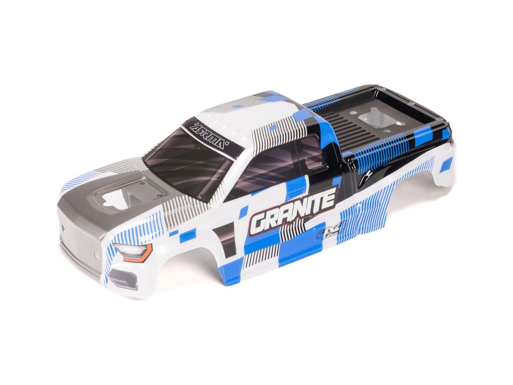 Náhradní díl pro RC model auta Arrma Granite 223S BLX 1:10 4WD: karosérie bezsponková modrá. Nabarvená, oříznutá s aplikovanou grafikou.