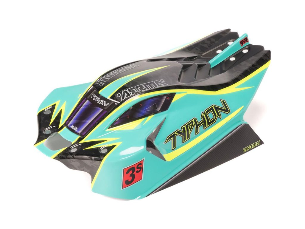 Náhradní díl pro RC model auta Arrma Typhon 223S 1:8 BLX: karosérie bezsponková Typhon 1:8, zelená/žlutá.