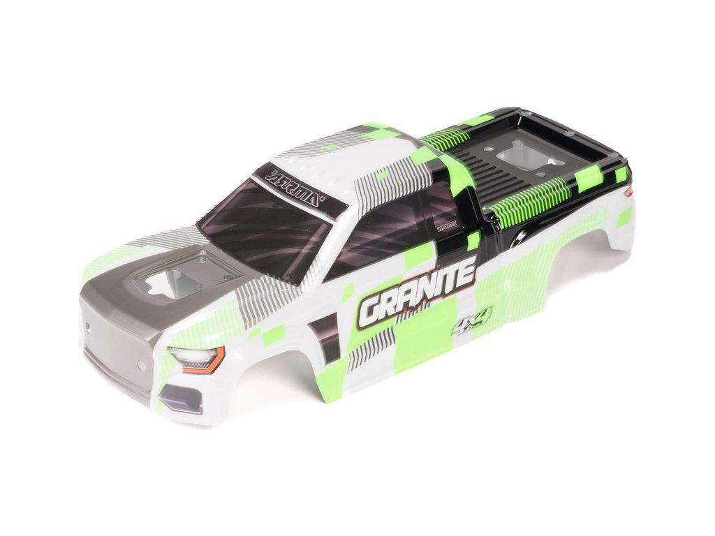 Náhradní díl pro RC model auta Arrma Granite 223S BLX 1:10 4WD: karosérie bezsponková zelená. Nabarvená, oříznutá s aplikovanou grafikou.