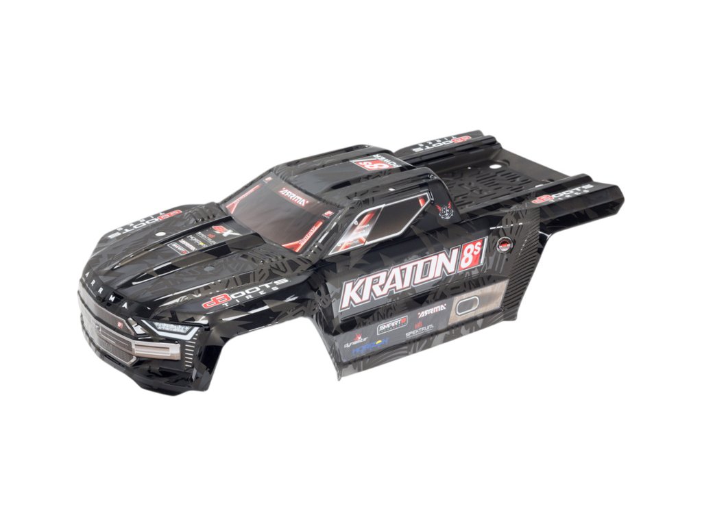 Náhradní díl pro RC model auta Arrma Kraton 1:5 4WD EXtreme Bash Roller/8S BLX: karosérie černá. Rozměry 593x277x168mm. Rozvor 491mm.