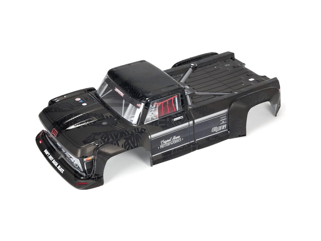 Náhradní díl pro RC model auta Arrma Outcast 1:5 4WD EXtreme Bash Roller: Hotová karosérie černá EXB. Délka 593mm, šířka 277g, výška 168mm.
