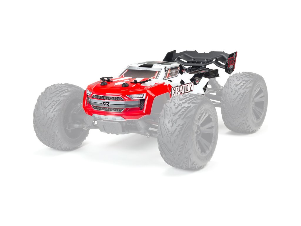 Arrma karosérie červená: Kraton 4S 4x4 - nabarvená karoserie z odolného polykarbonátu, detailní provedení, detailní samolepky, předvrtané montážní otvory. Aerodynamické prvky.