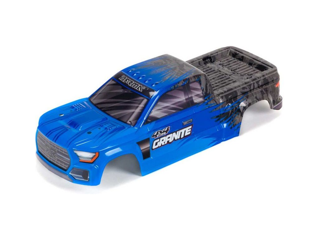 Náhradní díl pro RC modely aut 1:10 Arrma Granite 4x4 Mega: karosérie hotová nabarvená, modrá. Rozvor 287mm.