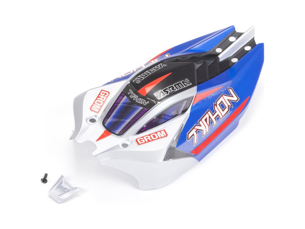 Náhradní díl pro RC model auta Arrma Typhon Grom 1:14: karosérie stříbrná/modrá.