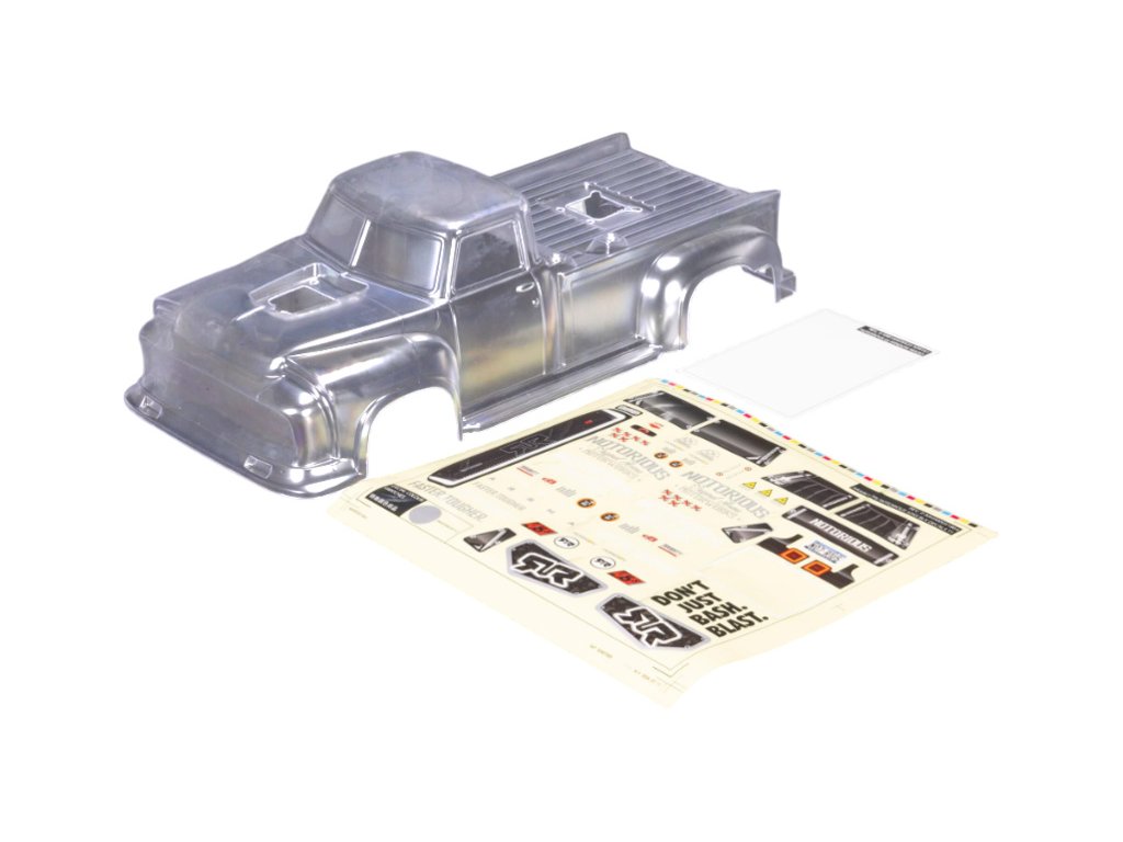Náhradní díl pro RC modely aut Arrma 1:8 Notorious 6S BLX V6: karosérie nenabarvená. Polykarbonátová karoserie, oříznutá pro snadnou montáž. Určeno pro bezsponkový systém uchycení. Sada uchycení karoserie není obsahem balení.