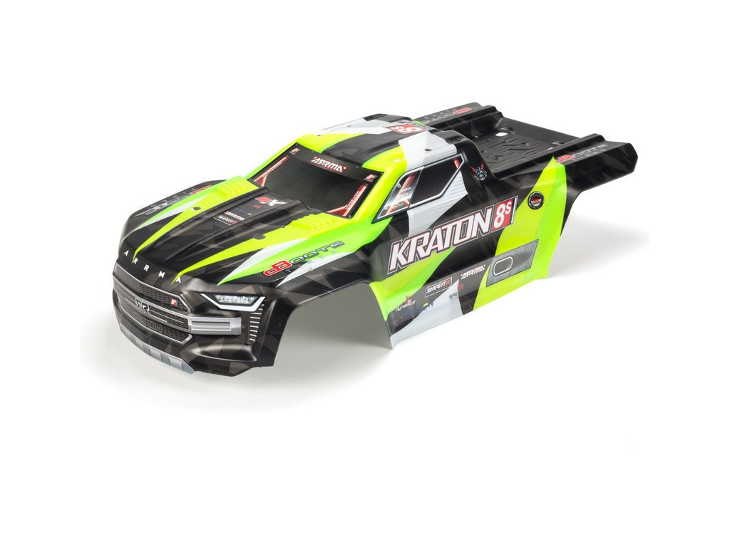 Náhradní díl pro RC modely aut Arrma 1:5 Kraton 8S: karosérie zelená. Rozměry 593x277x168mm. Rozvor 491mm.