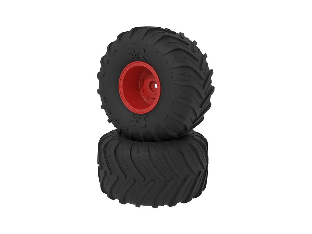 Kompletní kolo Arrma pro RC model Gorgon 1:10 (2ks). Disk červený. Kvalitní pneumatiky dBoots Chevron MT s vysokou přilnavostí a životností. Unašeč je šestihran 14mm.