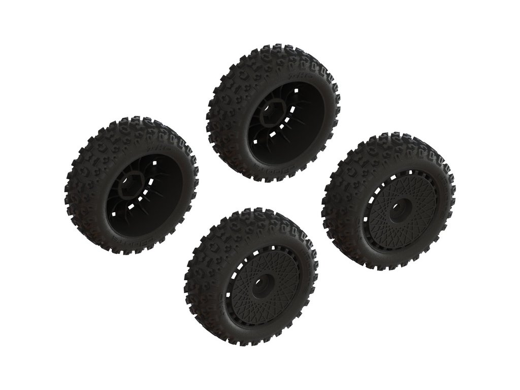 Náhradní díl pro RC model auta Arrma Typhon Grom 1:14: kolo s pneu dBoots 2-HO, disk černý (2ks).