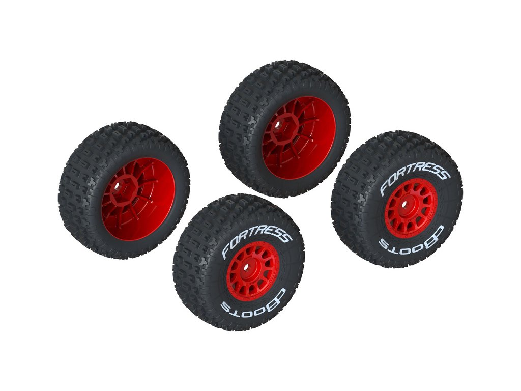 Náhradní díl pro RC model model auta Arrma Mojave Grom 1:16: kolo s pneu dBoots FORTRESS, disk červený (4 ks).