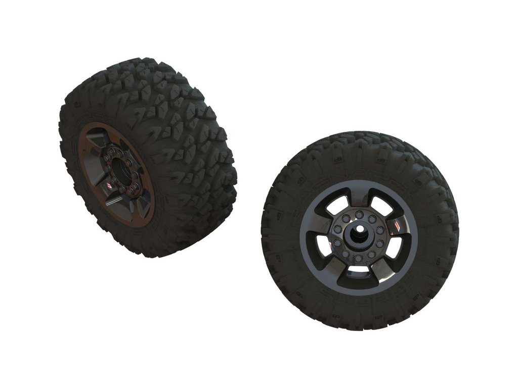 Náhradní díl pro RC modely aut Arrma Granite Mega, Big Rock BLX: kolo s pneu dBoots Ragnarok Mt, černý chrom (2ks)