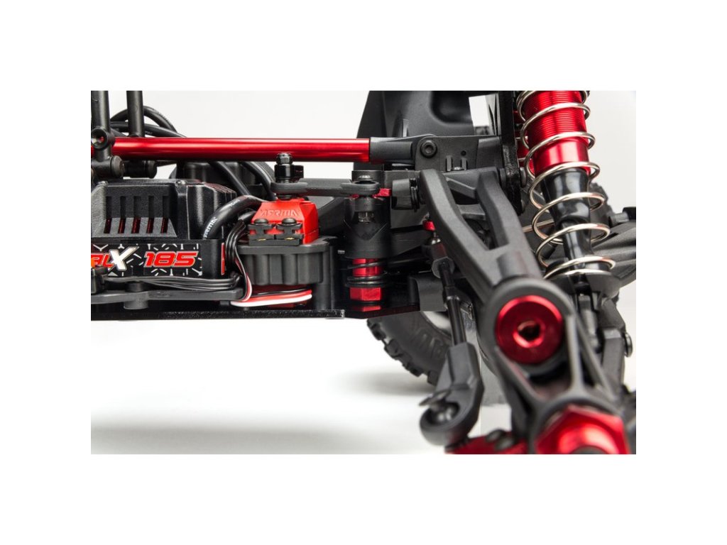 Výkonný Monster Truck Kraton 6S BLX, pro divokou jízdu na Off Road trati. Vysoce detailní nabarvená karoserie má zvýšenou ochranu proti poškození. O bezpečný přenos výkonu se starají čtyři CVD hřídele, trvanlivé kompozitní závěsné ramena a těhlice, tuhý hliníkový podvozek šasí o tloušťce 3 mm, 3 celokovové diferenciály a převodovka s ocelovými koly. Jezděte bez kompromisů, o brutální výkon se stará střídavý motor BLX4074 2050Kv s hliníkovým pláštěm a 150A regulátor BLX185 s chladičem a konektory IC5 a kabely 10AWG.