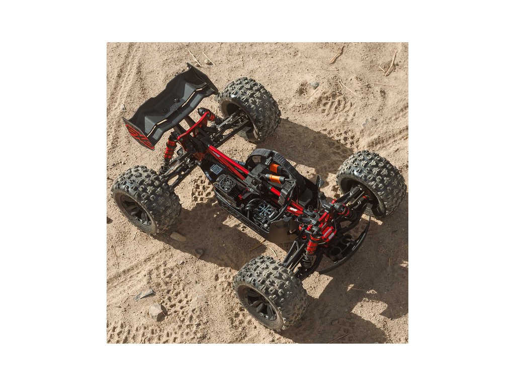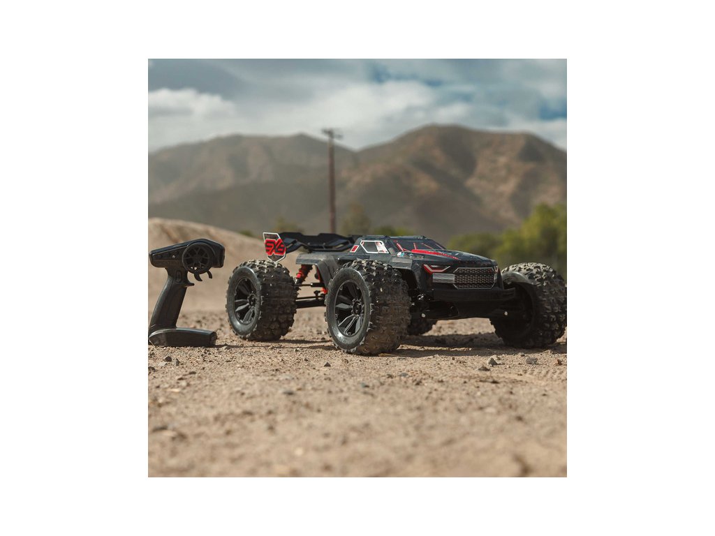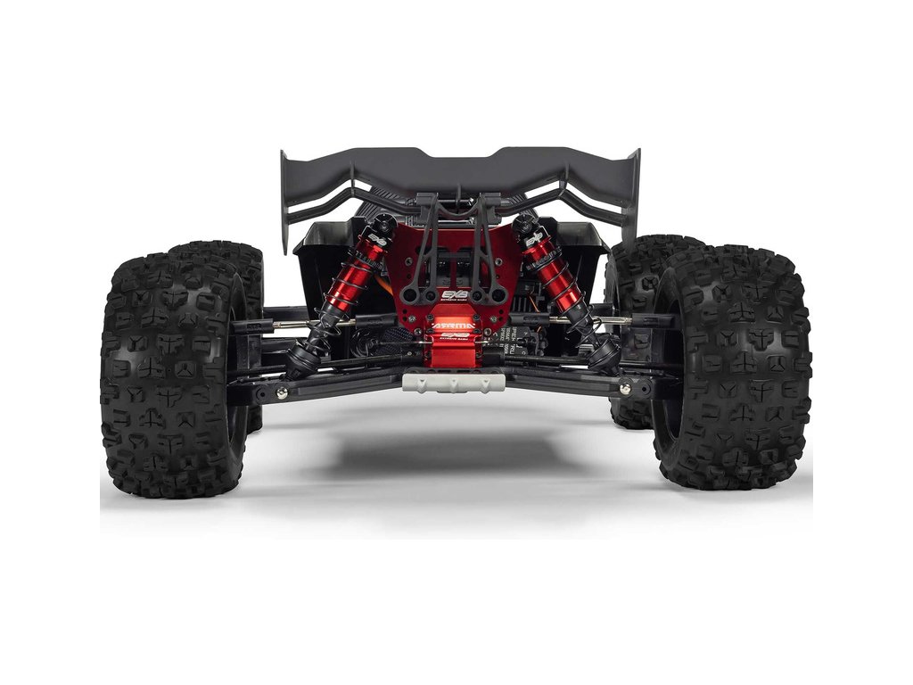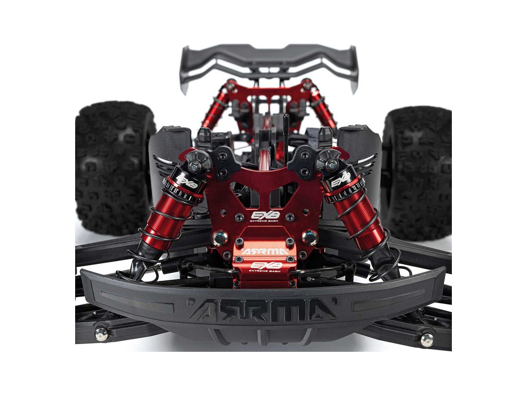 Verze V6 legendárního RC modelu auta Arrma Kraton 6S BLX v měřítku 1:8 a ve vrcholném provedení Extreme Bash se spoustou vysoce odolných dílů z pevnostního hliníku, která posouvá svou impozantní rychlost a sílu na další úroveň a přidává klíčová vylepšení pro odolnost. Extra výkonný střídavý motor umožňuje rychlost modelu až 104 km/h. Nainstalována je kompletní elektronika s novým regulátorem Spektrum Firma V2, servo s kovovými převody a přijímač. Výborné jízdní vlastnosti na asfaltu i v terénu zaručuje nezávislé zavěšení s širokým rozchodem kol a vyladěný náhon 4x4 s diferenciály. Karoserie je bezsponková pro rychlou a snadnou montáž a demontáž a pro čistý vzhled bez klipů.