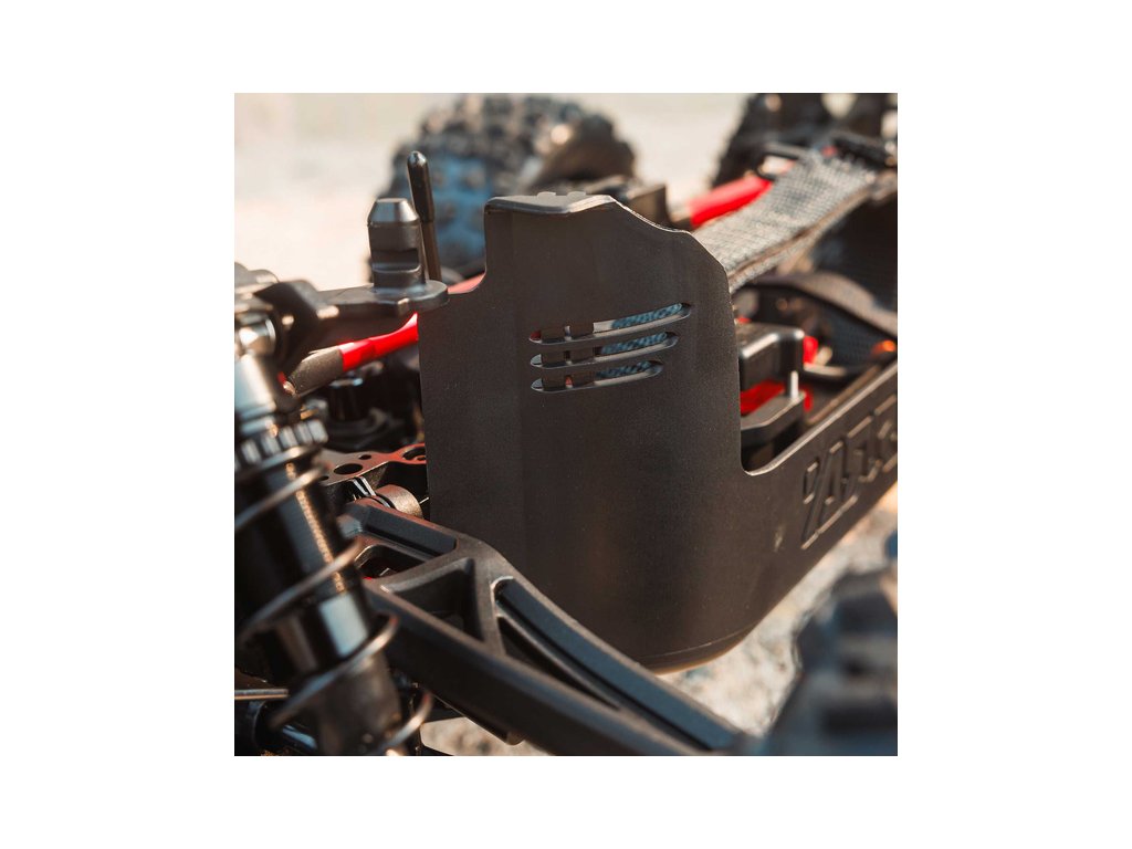 Podvozek, diferenciály, přední nárazník, kluzné desky podvozku a dokonce i uchycení křídla to všechno bylo vylepšeno a zesíleno pro větší pevnost. Nové boční ochranné kryty zamezují vnikání nečistot, dvoudílná vzpěra mezi věžemi přidává tuhost podvozku a zjednodušuje údržbu. Použitá elektronika je voděodolná* a nemusíte se bát jízdy v mokrém prostředí. Regulátor V2 má upravený firmware pro ještě vyšší výkon a rychlejší odezvu. Přesné a jisté řízení zajišťuje digitální servo s kovovými převody.