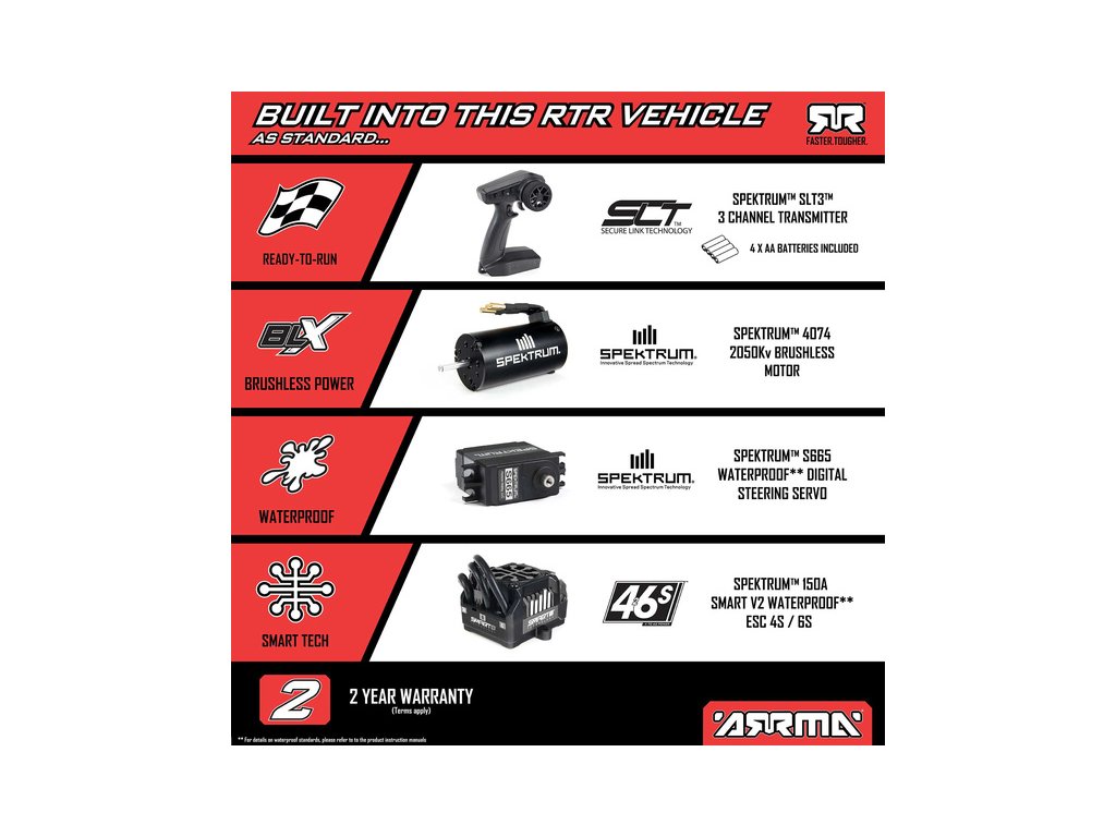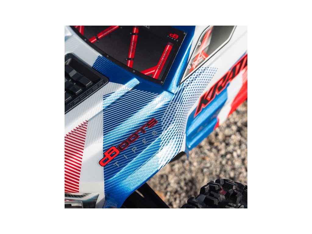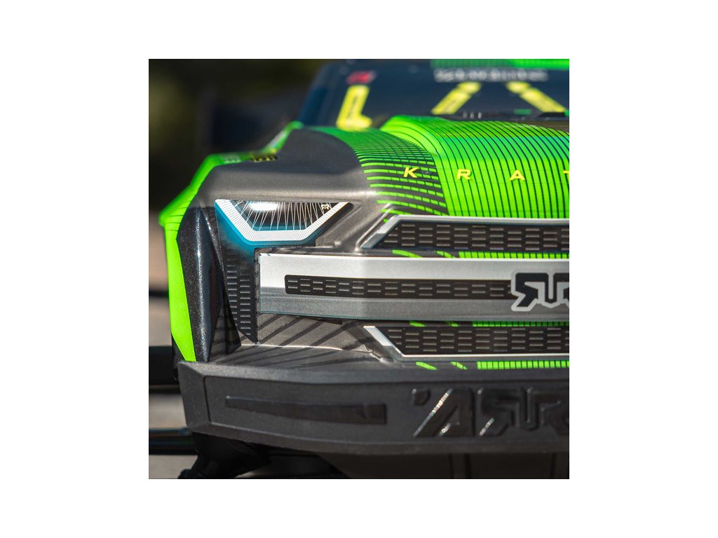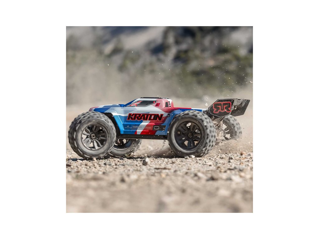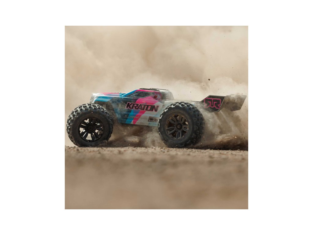 Nová verze V6 legendárního RC modelu auta Arrma Kraton 6S BLX v měřítku 1:8, která posouvá svou impozantní rychlost a sílu na další úroveň a přidává klíčová vylepšení pro odolnost. Instalovány jsou vysoce pevnostní díly EXB (Extreme Bash), pro nespoutanou jízdu. Extra výkonný střídavý motor umožňuje rychlost model až 104 km/h. Nainstalována je kompletní elektronika s novým regulátorem Spektrum Firma V2, servo s kovovými převody a přijímač. Výborné jízdní vlastnosti na asfaltu i v terénu zaručuje nezávislé zavěšení s širokým rozchodem kol a vyladěný náhon 4x4 s diferenciály. Karoserie je bezsponková pro rychlou a snadnou montáž a demontáž a pro čistý vzhled bez klipů.