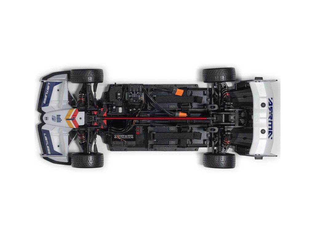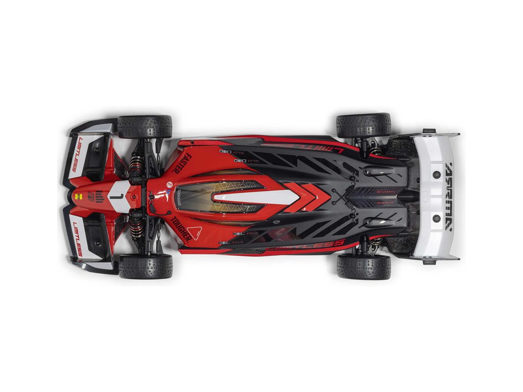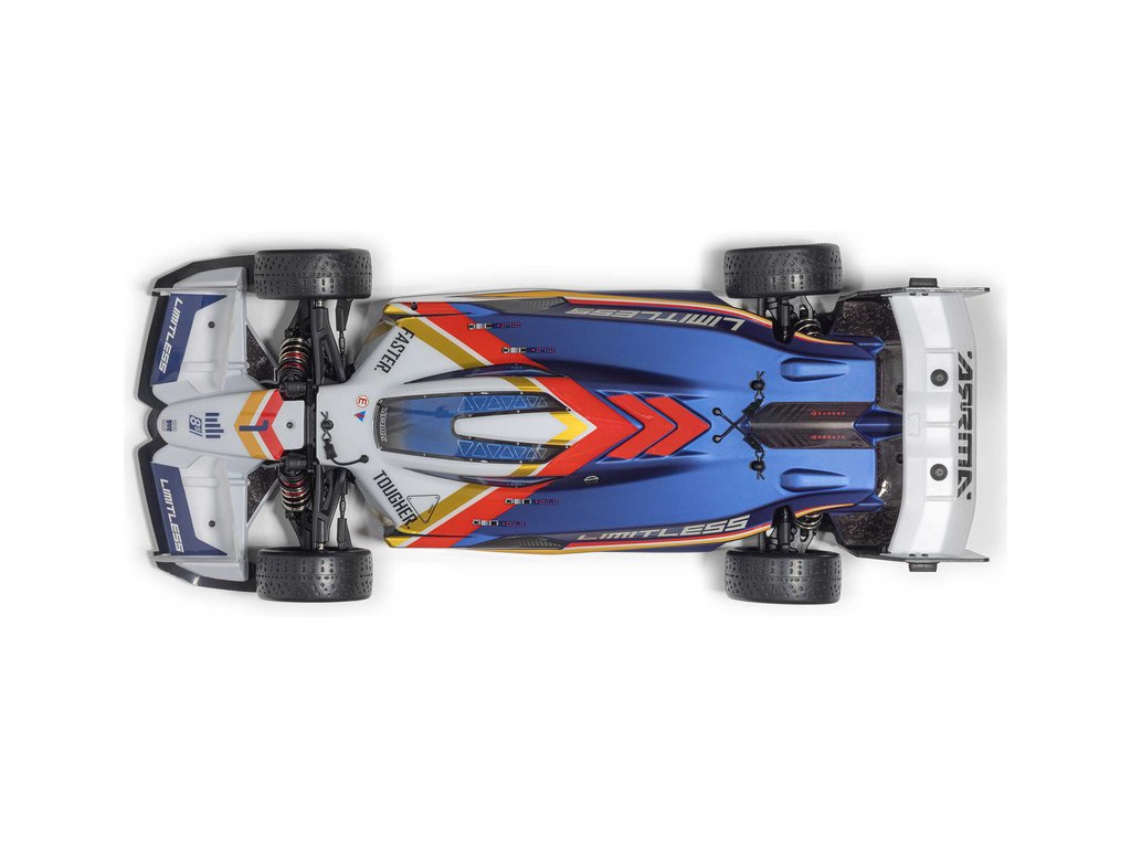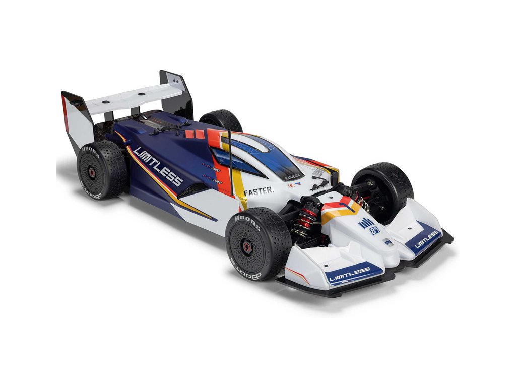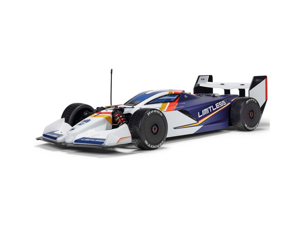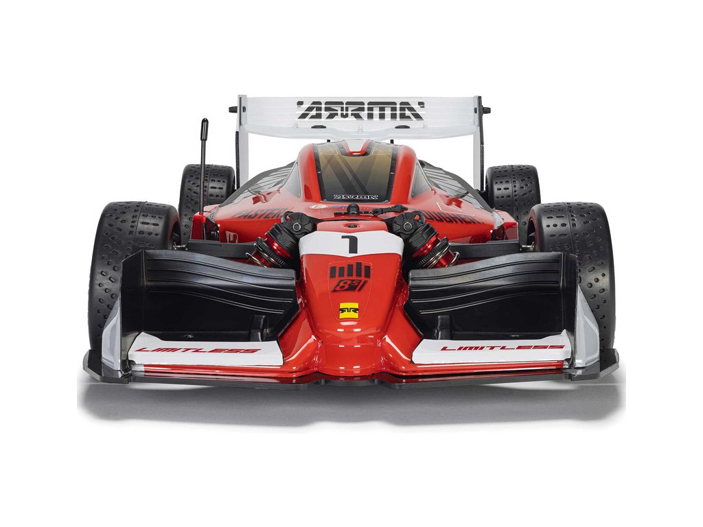 RC model auta Arrma Limitless 8S BLX 1:7 je silniční speciál v designu formule pro zkušené řidiče s rychlostí přes 110 km/h, respektive až 190 km/h s obsaženým rychlostním paketem. Střídavý motor a regulátor Spektrum 160A, výkonné servo, vysílač DX3 a přijímač se stabilizací AVC.