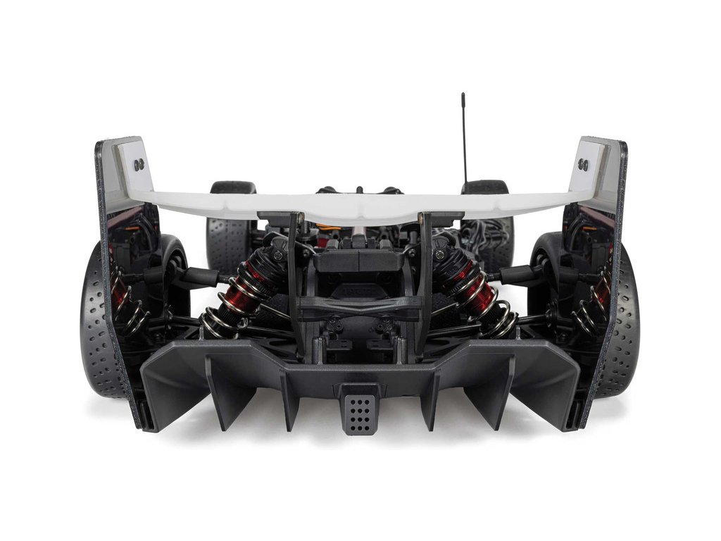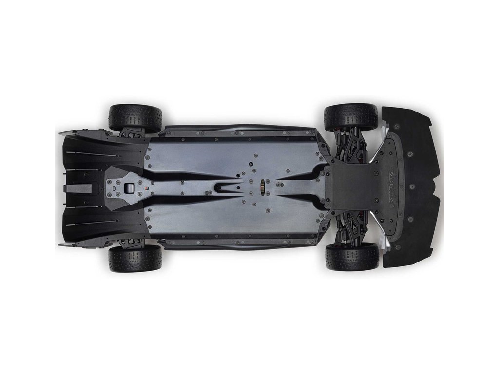 Šasi není jen díl sloužící ke spojení jednotlivých komponent auta ale má i důležitou funkci k zajištění účinného přítlaku vozu. Na černém eloxovaném podvozku je nainstalován difuzor pro hladké proudění vzduchu na spodní straně auta.