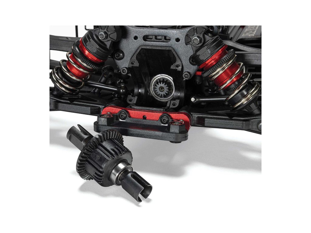 Šasi modelu tvoří podvozkový 3 mm plát z eloxovaného hliníku a středová výztuha pro tuhost konstrukce. Výkon se rozděluje na všechna kola pomocí celokovových nápravových diferenciálů EXB a centrálního diferenciálu. Nezávislé zavěšení kol obsahuje velkoobjemové olejové tlumiče, které jsou stejně jako věže tlumičů z eloxovaného hliníku. Předpětí pružin lze snadno nastavit pomocí matice. Pneumatiky dBoots Hoons poskytují výbornou přilnavost ať už jedete po asfaltu, nízké trávě, nebo rovné šotolině. Karoserie je speciálně tvarovaná pro nízký odpor vzduchu. Přední spoiler a velký zadní difuzor spolupracují, aby vytvořily optimální přítlak pro výborné jízdní vlastnosti. To vše vám pomůže zažít novou definici výkonu a rychlosti.