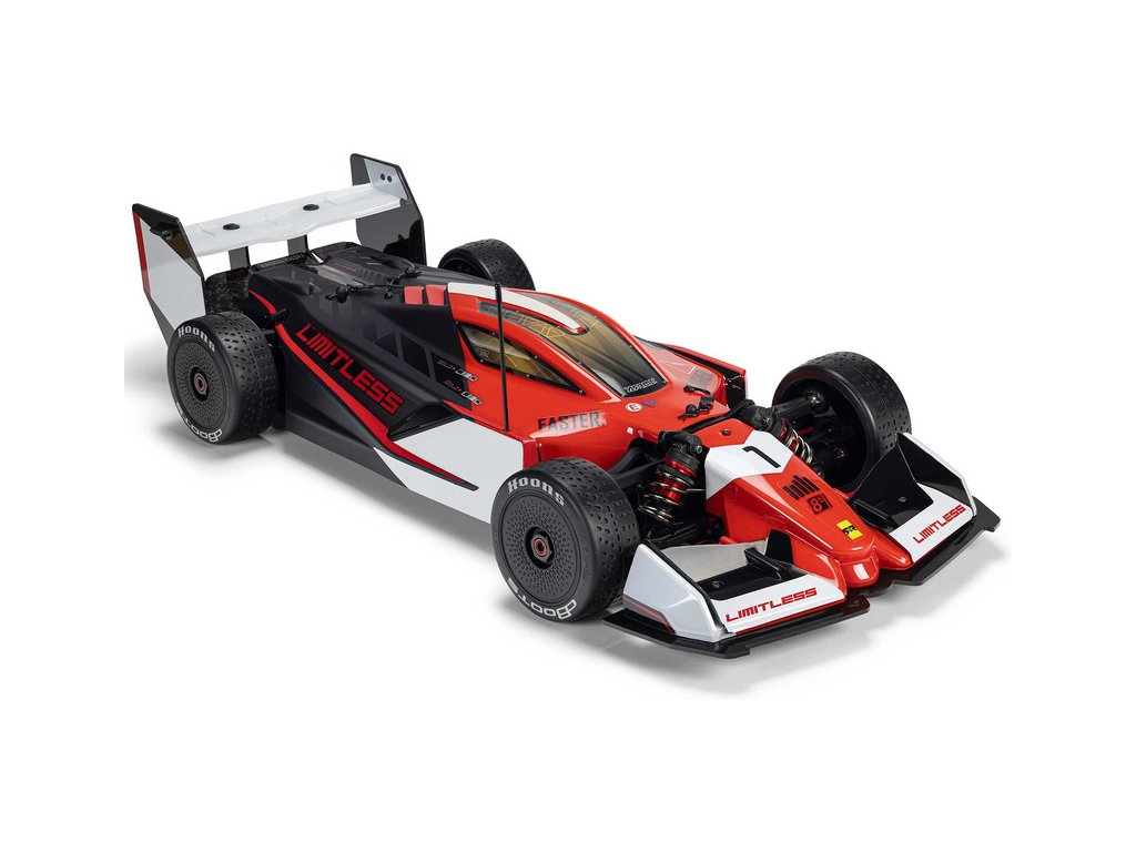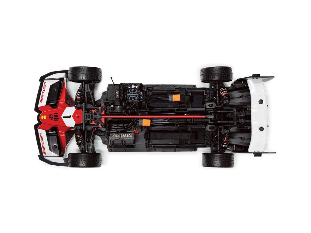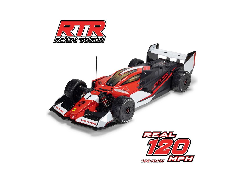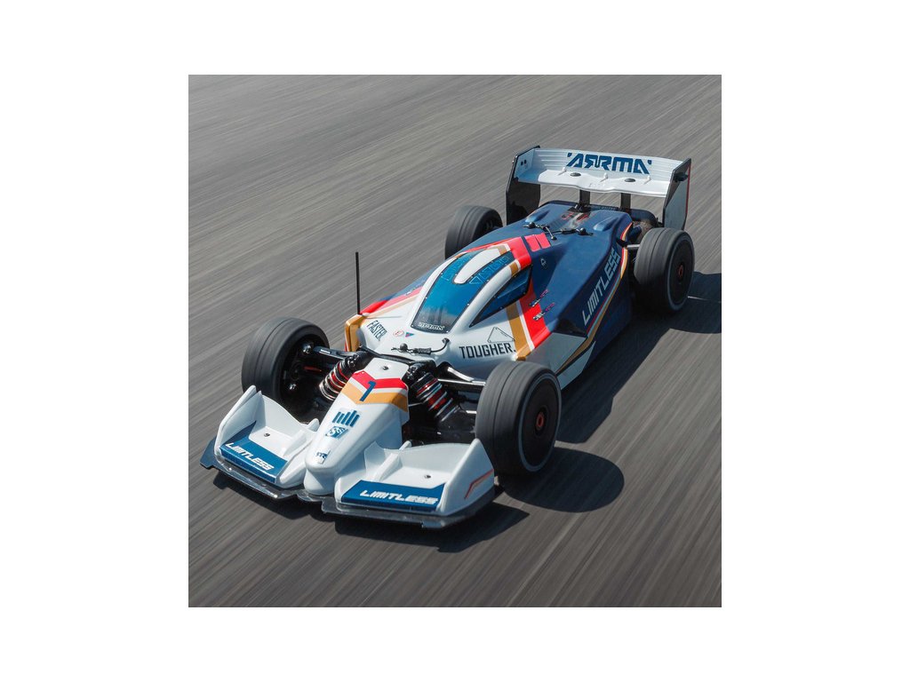 RC model auta Arrma Limitless 8S BLX 1:7 je silniční speciál v designu formule pro zkušené řidiče s rychlostí přes 110 km/h, respektive až 190 km/h s obsaženým rychlostním paketem. Střídavý motor a regulátor Spektrum 160A, výkonné servo, vysílač DX3 a přijímač se stabilizací AVC.