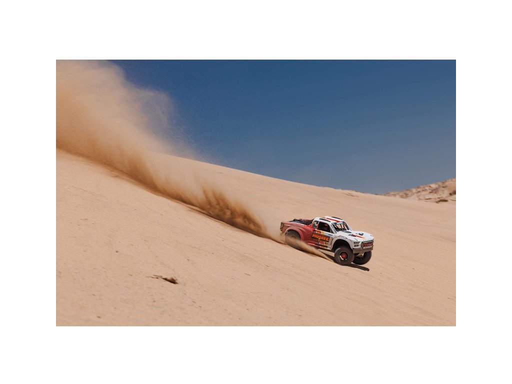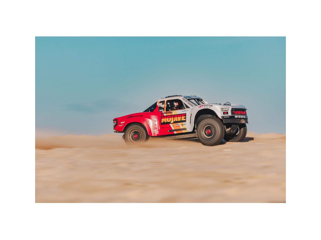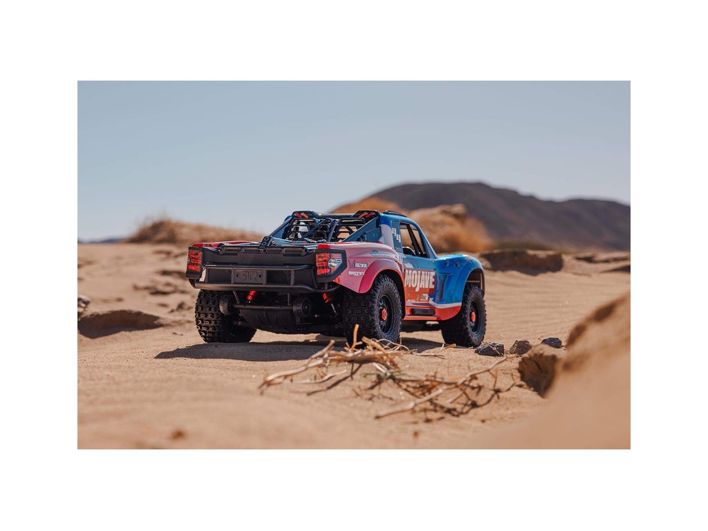 RC model auta Arrma Mojave 4S v měřítku 1:8 představuje ideální střední cestu mezi menšími modely 3S a většími 6S. Díky vynikajícímu střídavému pohonu jede až rychlostí 80 km/h. Náhon 4x4 a špičková konstrukce zavěšení zaručí bezkonkurenční jízdní vlastnosti. To vše je zabaleno do realisticky zpracované karoserie pouštního závodního vozu s detailním kokpitem, ochrannou klecí a střešními ližinami.