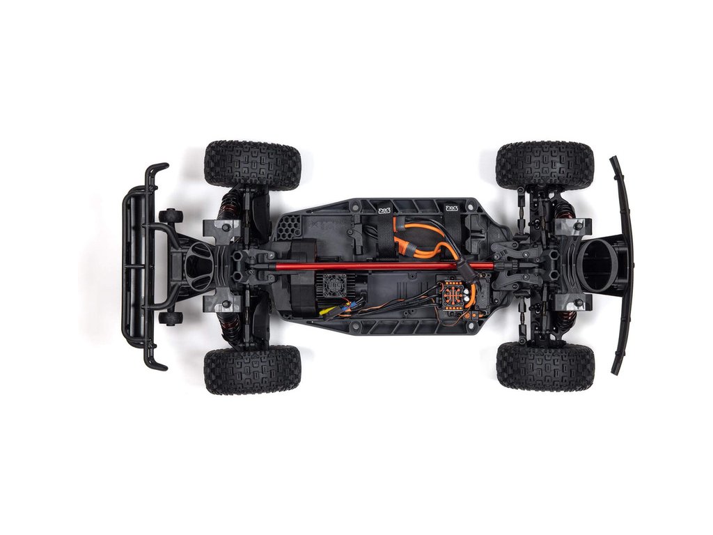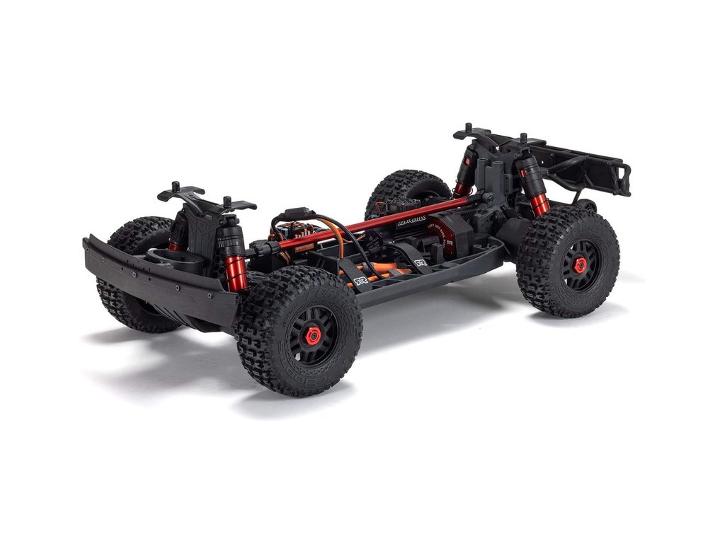 Neuvěřitelnou akceleraci a rychlost dodává modelu střídavý motor Spektrum 2400kv a regulátor otáček Spektrum Firma 120A. Robustní kompozitní podvozek a převodovka vylepšená o díly EXB (EXtreme Bash), poskytují modelu neskutečnou odolnost, která je vlastní značce Arrma. Nově je na platformě Arrma 4S použit středový diferenciál pro úžasnou trakci a ovladatelnost.