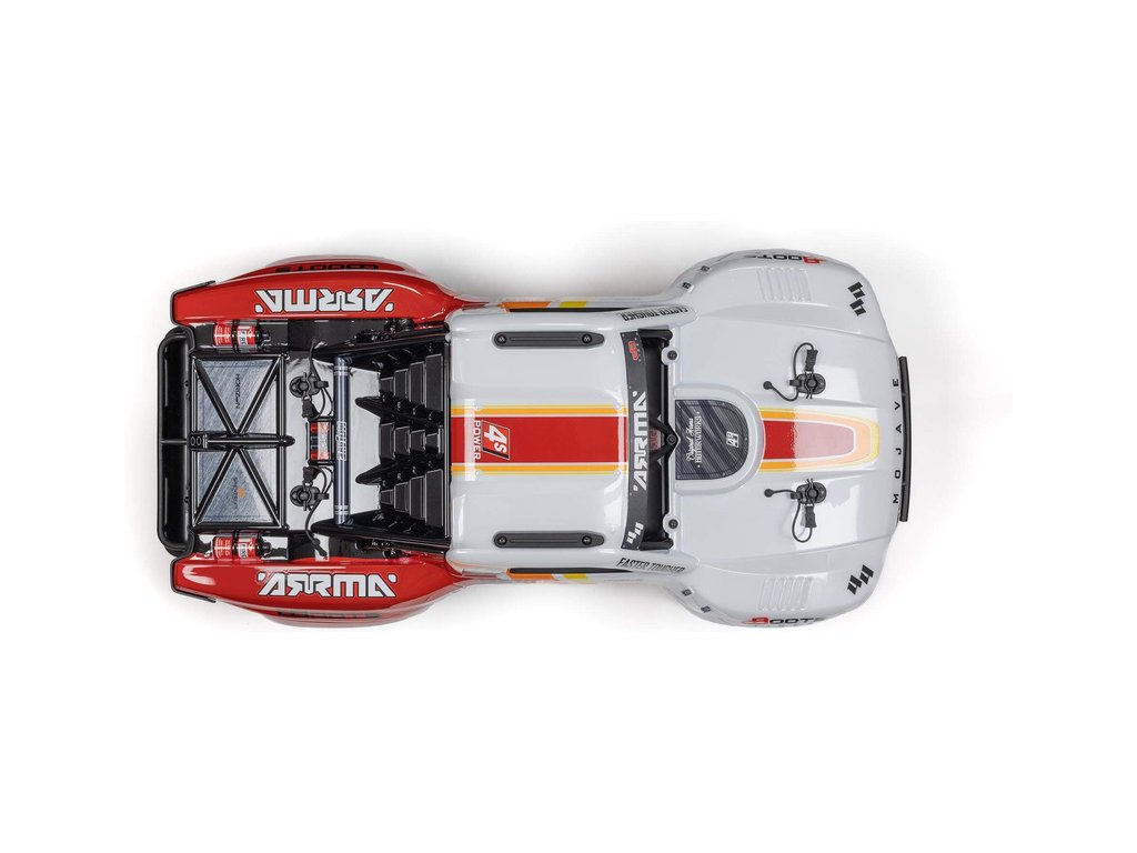 RC model auta Arrma Mojave 4S v měřítku 1:8 představuje ideální střední cestu mezi menšími modely 3S a většími 6S. Díky vynikajícímu střídavému pohonu jede až rychlostí 80 km/h. Náhon 4x4 a špičková konstrukce zavěšení zaručí bezkonkurenční jízdní vlastnosti. To vše je zabaleno do realisticky zpracované karoserie pouštního závodního vozu s detailním kokpitem, ochrannou klecí a střešními ližinami.