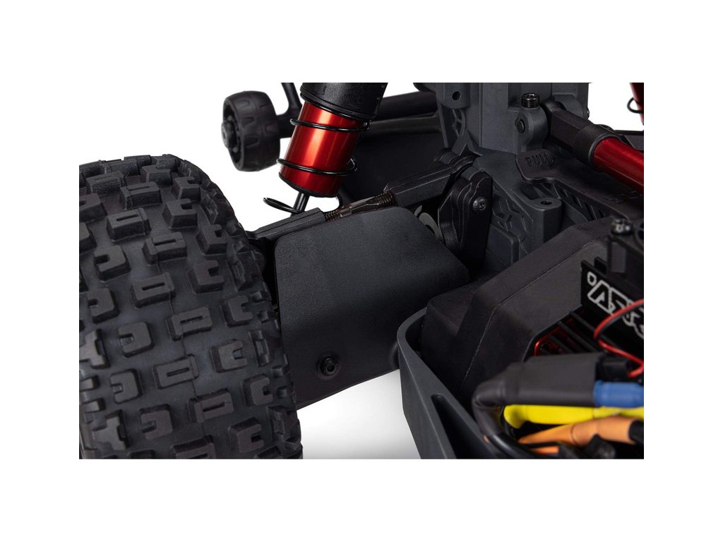 Neuvěřitelnou akceleraci a rychlost dodává modelu střídavý motor Spektrum 2400kv a regulátor otáček Spektrum Firma 120A. Robustní kompozitní podvozek a převodovka vylepšená o díly EXB (EXtreme Bash), poskytují modelu neskutečnou odolnost, která je vlastní značce Arrma. Nově je na platformě Arrma 4S použit středový diferenciál pro úžasnou trakci a ovladatelnost.
