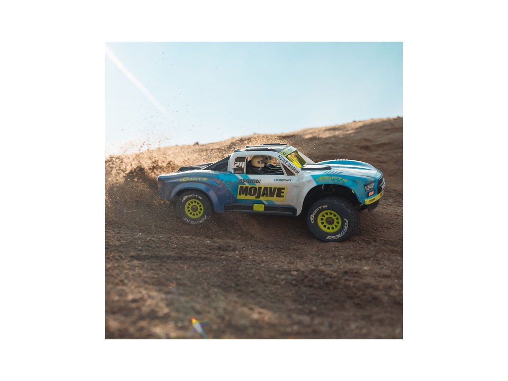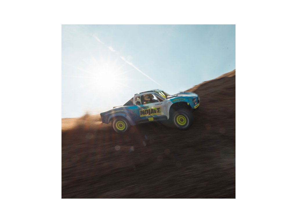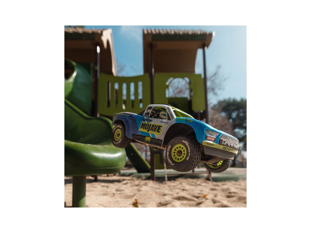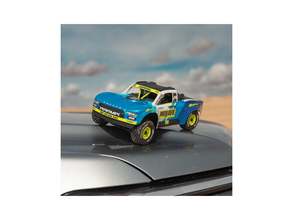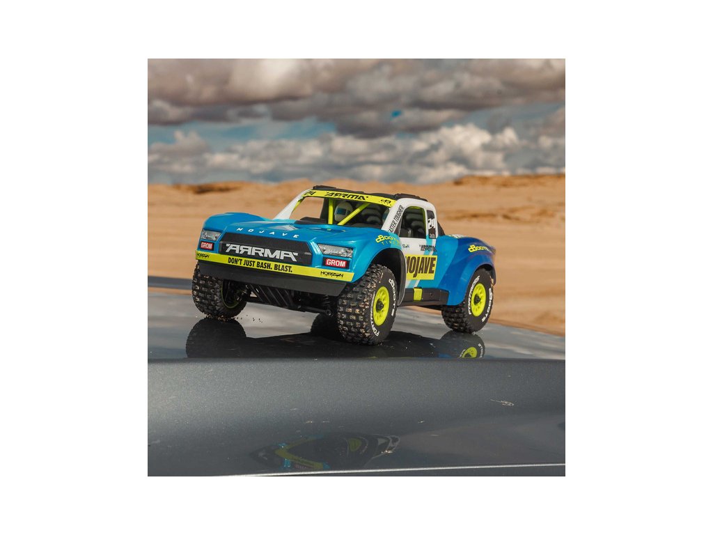 RC model auta Arrma Mojave Grom v měřítku 1:16, s náhonem 4WD, funkcemi Smart a rychlostí až 30 km/h. Precizně zkonstruovaný malý zábavný model pouštního Offroadu. Detailní karoserie, kompletně připraven k jízdě, včetně baterie a nabíječe.