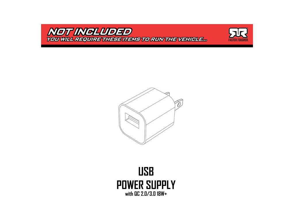 Vše potřebné k provozu modelu je obsahem balení. USB nabíječ lze napájet libovolným USB adaptérem. Pro prodloužení doby jízdy doporučujeme pořízení dalšího totožného akumulátoru s konektorem IC2, který je součástí balení. Pro zkrácení nabíjecí doby si můžete zakoupit výkonnější nabíječ.