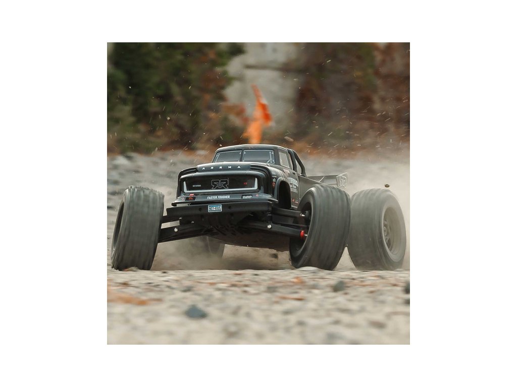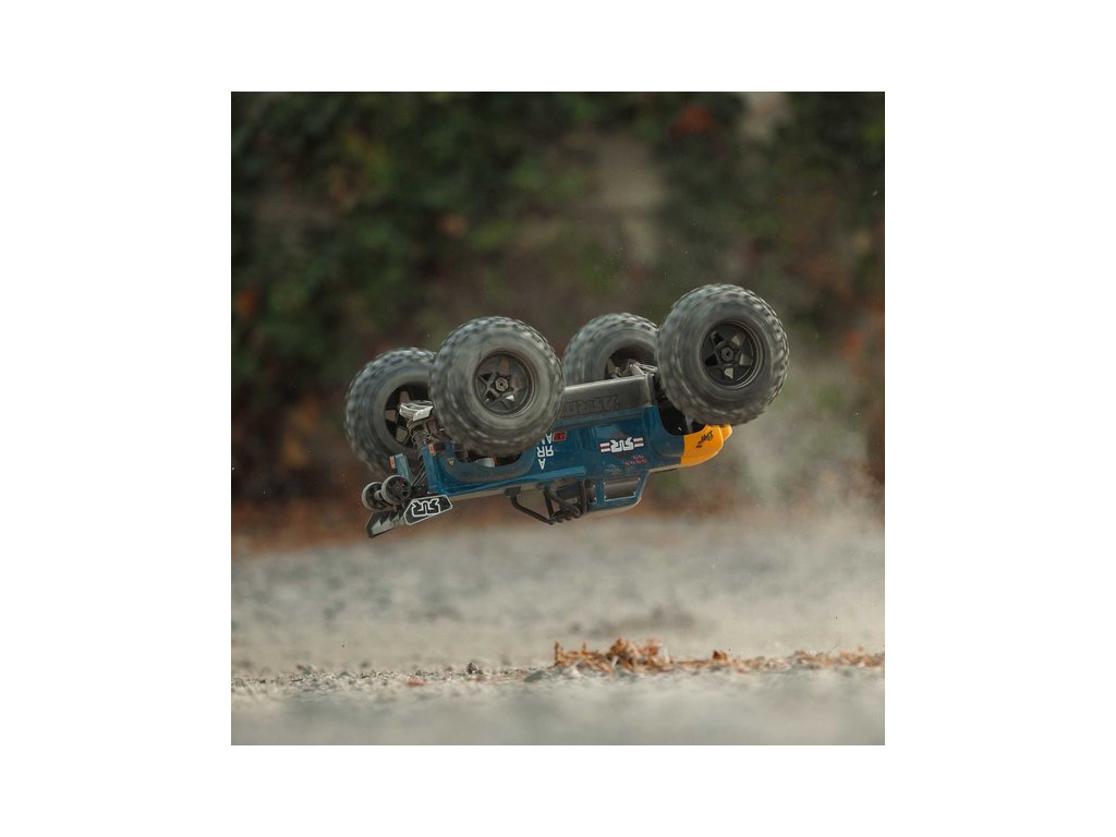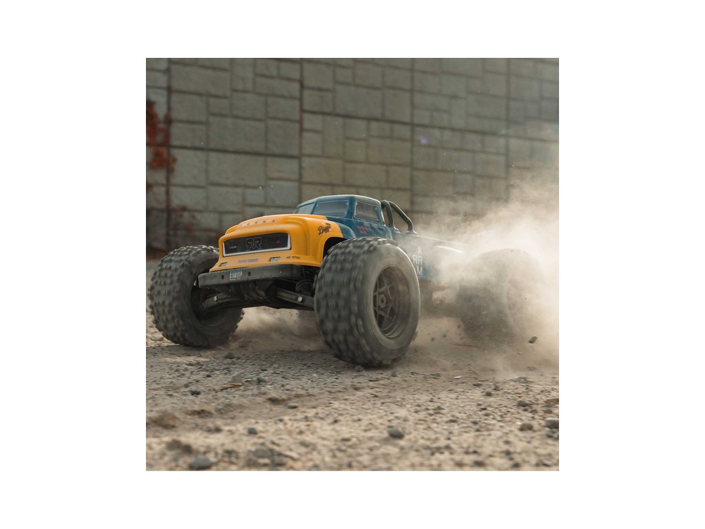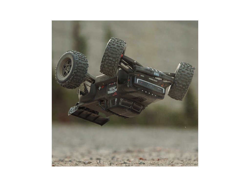 RC model auta Arrma Notorious 6S BLX 1:8 s náhonem 4WD a krátkým rozvorem pro kaskadérské kousky, je vybaven střídavý motorem, pro rychlost až 96 km/h! Regulátor Spektrum s podporou telemetrie a funkcemi Smart. Hliníkové šasi a další díly EXB pro maximální odolnost. Vysílač Spektrum SLT3.