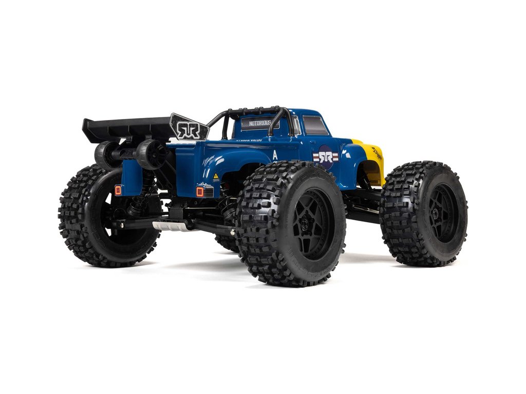 Nová verze V6 RC modelu auta Arrma Notorious 6S BLX v měřítku 1:8, která posouvá svou impozantní rychlost a sílu na další úroveň a přidává klíčová vylepšení pro odolnost. Díky tomu můžete provádět ještě lepší a odvážnější kaskadérské kousky, model je díky krátkému rozvoru pro to jako stvořený. Instalovány jsou vysoce pevnostní díly EXB (Extreme Bash), pro nespoutanou jízdu. Extra výkonný střídavý motor umožňuje rychlost model až 96 km/h. Nainstalována je kompletní elektronika s novým regulátorem Spektrum Firma V2, servo s kovovými převody a přijímač. Výborné jízdní vlastnosti na asfaltu i v terénu zaručuje nezávislé zavěšení a vyladěný náhon 4x4 s diferenciály. Karoserie, s retro vzhledem inspirovaným letadly z 2. světové války, je bezsponková pro rychlou a snadnou montáž a demontáž a pro čisté linie bez klipů.