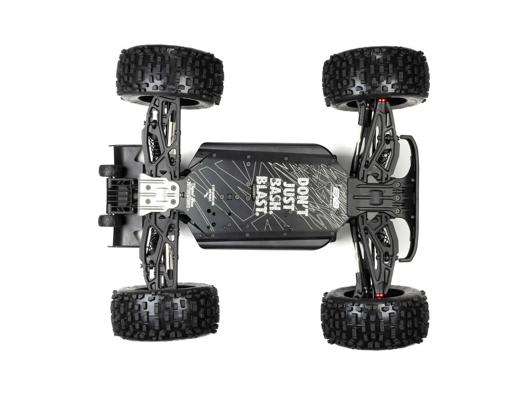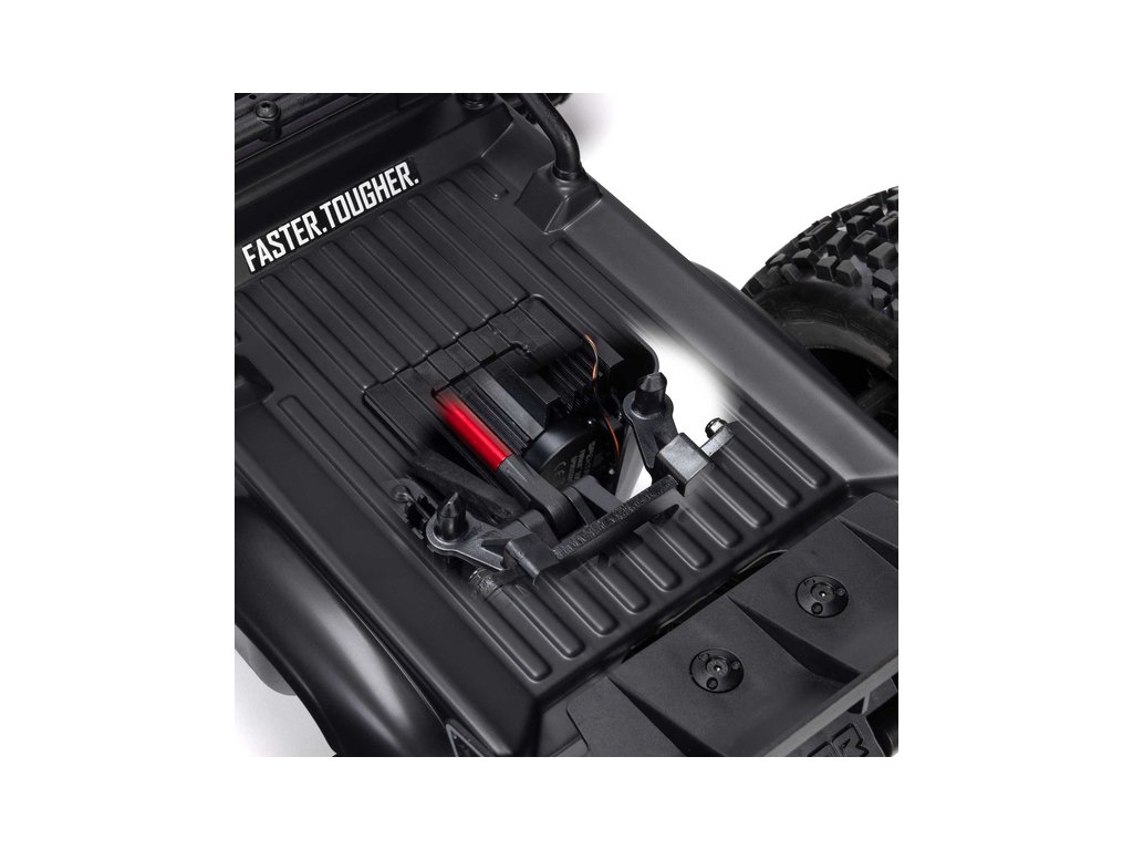 Podvozek, diferenciály, přední nárazník, kluzné desky podvozku a dokonce i uchycení křídla to všechno bylo vylepšeno a zesíleno pro větší pevnost. Nové boční ochranné kryty zamezují vnikání nečistot, dvoudílná vzpěra mezi věžemi přidává tuhost podvozku a zjednodušuje údržbu. Použitá elektronika je voděodolná* a nemusíte se bát jízdy v mokrém prostředí. Regulátor V2 má upravený firmware pro ještě vyšší výkon a rychlejší odezvu. Přesné a jisté řízení zajišťuje digitální servo s kovovými převody.