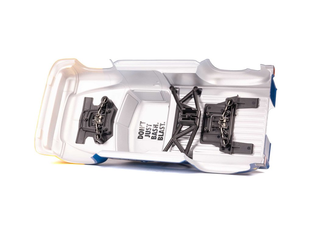 Podvozek, diferenciály, přední nárazník, kluzné desky podvozku a dokonce i uchycení křídla to všechno bylo vylepšeno a zesíleno pro větší pevnost. Nové boční ochranné kryty zamezují vnikání nečistot, dvoudílná vzpěra mezi věžemi přidává tuhost podvozku a zjednodušuje údržbu. Použitá elektronika je voděodolná* a nemusíte se bát jízdy v mokrém prostředí. Regulátor V2 má upravený firmware pro ještě vyšší výkon a rychlejší odezvu. Přesné a jisté řízení zajišťuje digitální servo s kovovými převody.