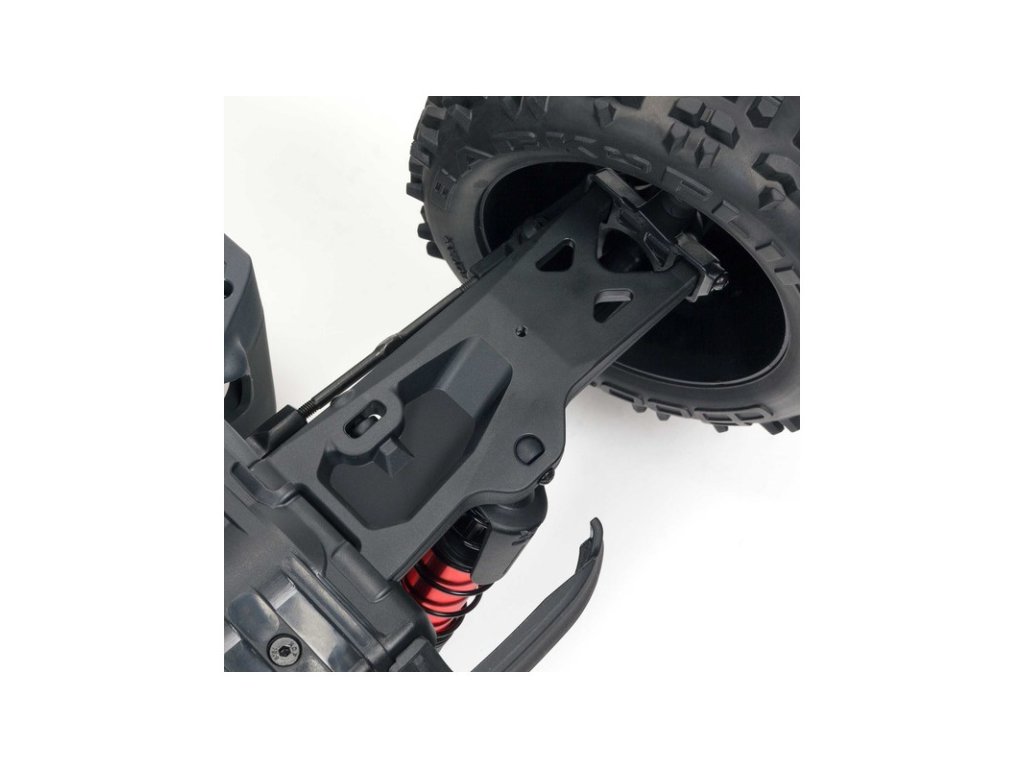 Mezi prvky, které přispívají k vysoké odolnosti šasi Arrma 4X4 4S BLX patří pevnější kompozitní šasi, ochranné skluznice vpředu a vzadu, řízení s odolným servo-saverem, třecí spojka a kuličková ložiska v celém pohonném ústrojí. Zvýšené bočnice šasi omezují pronikání nečisto do modelu. Přední a zadní nárazníky účinně pohltí nárazy.