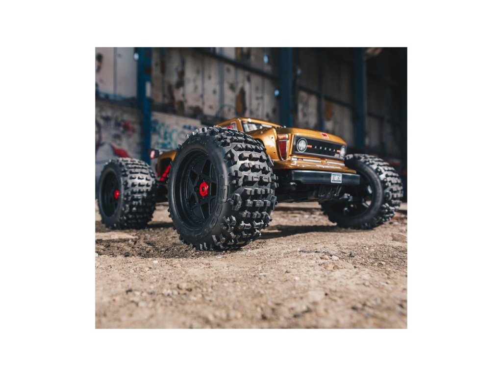 Vysoce kvalitní pryžové pneumatiky dBoots ® Back-Flip jsou nalepeny na kolech MT 3.8" s hliníkovými maticemi a unašečem 17 mm.