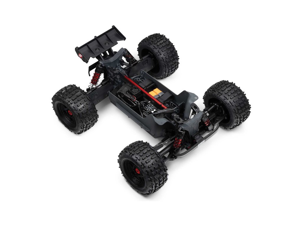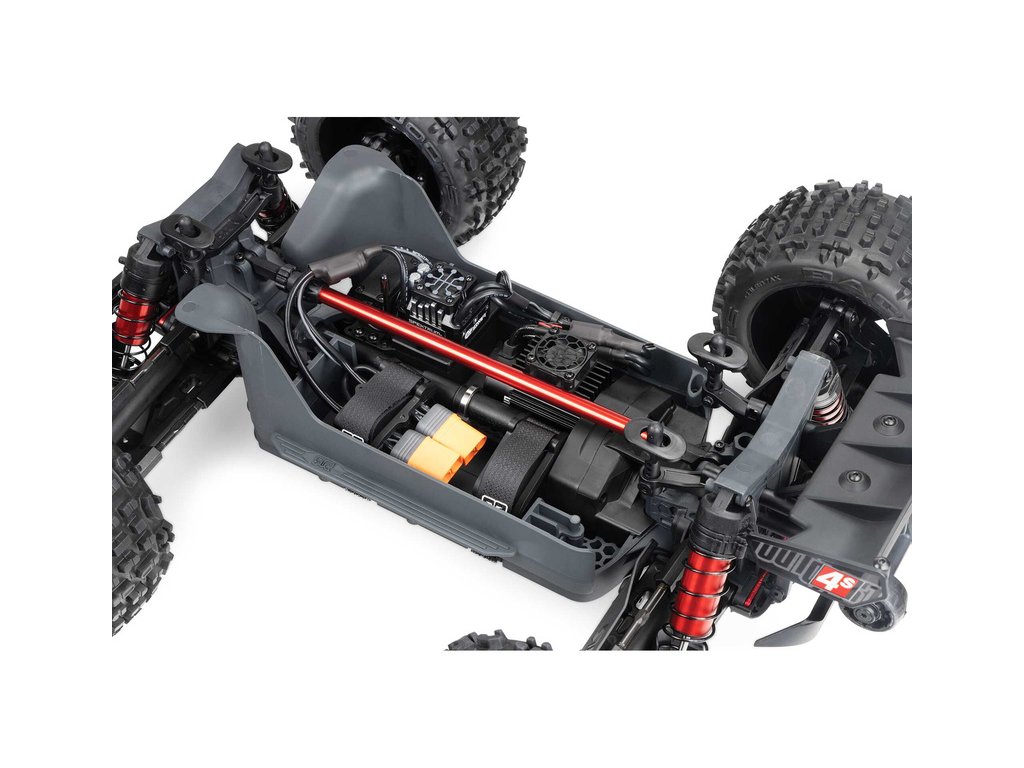 Zmíněné vylepšení se kombinují s osvědčenými vlastnostmi ARRMA 4S BLX jako jsou – hliníkové olejové tlumiče s dlouhým chodem, široké robustní ramena, až po kovové diferenciály a ocelové přední a zadní hnací hřídele EXtreme Bash CVD pro nezastavitelný přísun výkonu. Šasi modelu rovněž obsahuje populární snadno přístupnou modulární konstrukci ARRMA, aby byla běžná údržba rychlá a jednoduchá.