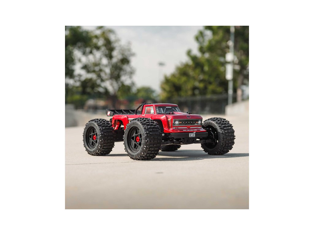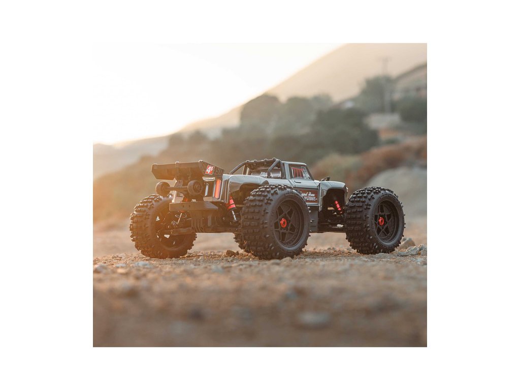 RC model Arrma Outcast 4S V2 BLX, pro kaskadérské kousky je poháněný střídavým motorem s brutální akcelerací a jede rychlostí až 80 km/h. Nově obsahuje výkonnější elektronikou a středový diferenciál. Odolné kompozitní šasi a kovové pohonné ústrojí, olejové tlumiče a detailní karoserie.