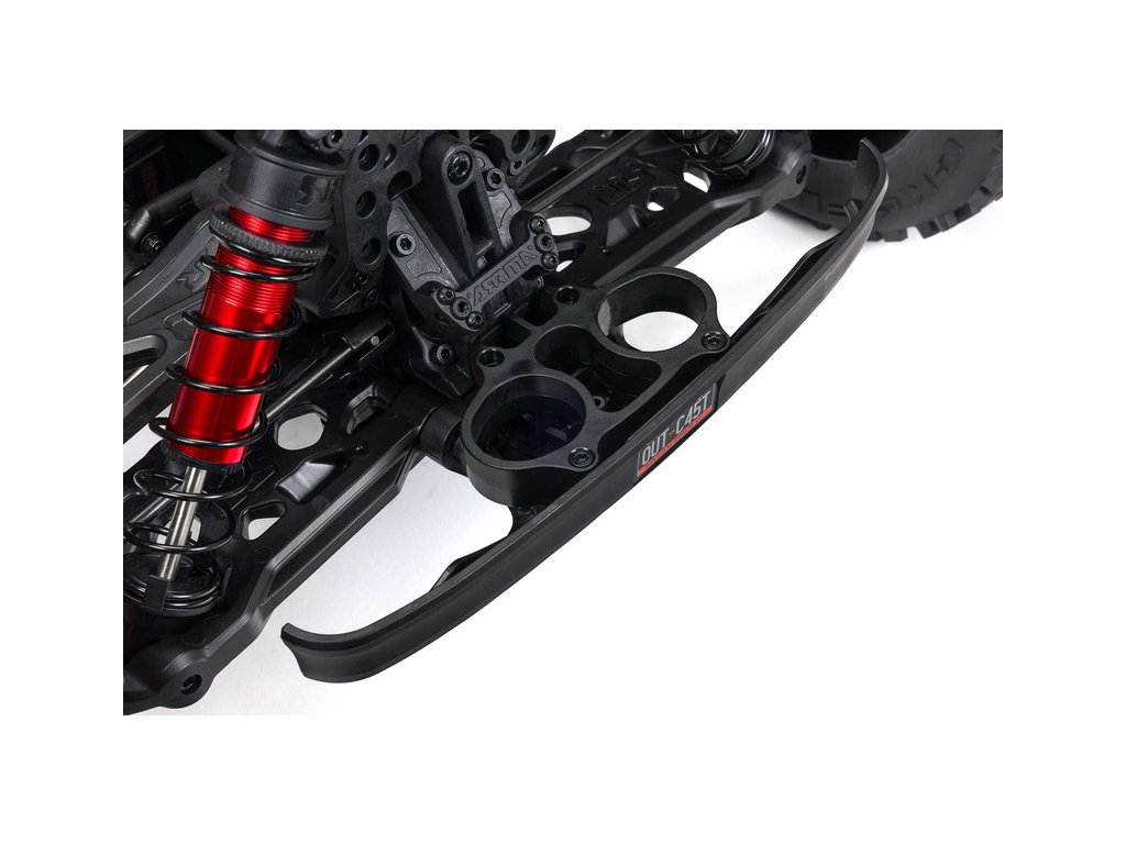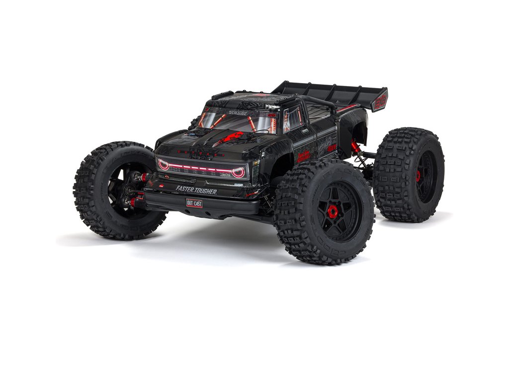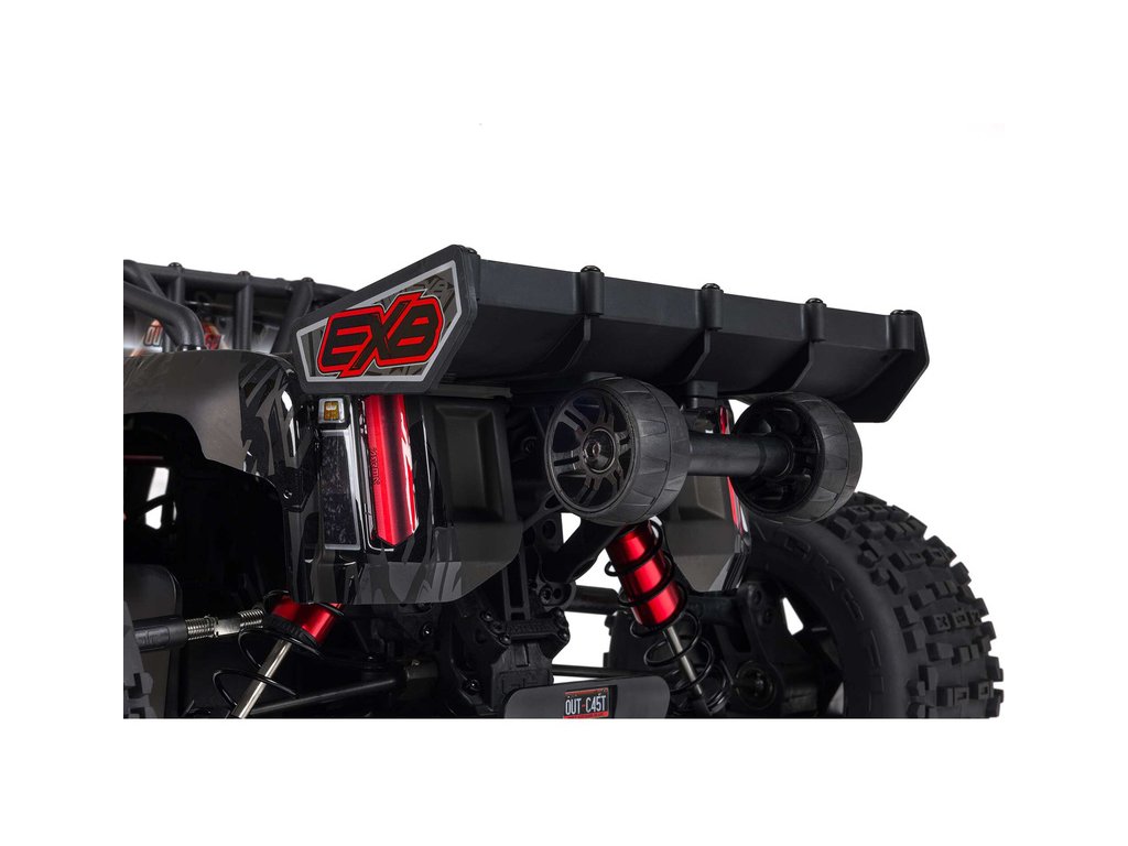 Největší a nejsilnější RC auto ARRMA pro kaskadérské kousky, to je Outcast 8S, v měřítku 1:5 a náhonem 4x4. Je vybavený vysoce odolnými hliníkovými díly EXtreme Bash, výkonnějším střídavým pohonem 8S a agresivní karosérií EXB. Rychlost až 80 km/h. Vysílač Spektrum DX3 2.4GHz.