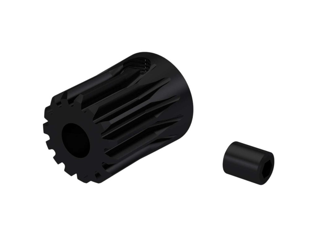 Arrma pastorek na hřídel 3.2 mm s 15 zuby a modulem ozubení 50.8DP (0,5 mm) pro RC modely aut. Vyrobeno z kalené oceli. CNC obráběný. Stavěcí šroub M3 x 4 mm.