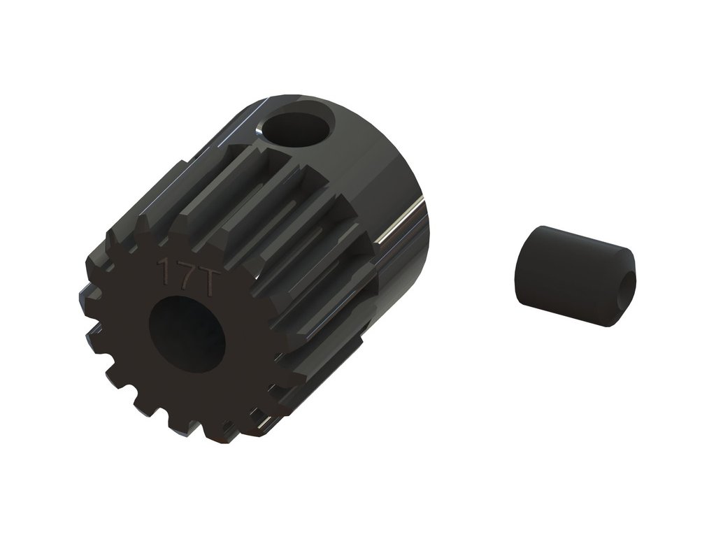 Arrma pastorek na hřídel 3.2 mm s 17 zuby a modulem ozubení 50.8DP (0,5 mm) pro RC modely aut. Vyrobeno z kalené oceli. CNC obráběný. Stavěcí šroub M3 x 4 mm.
