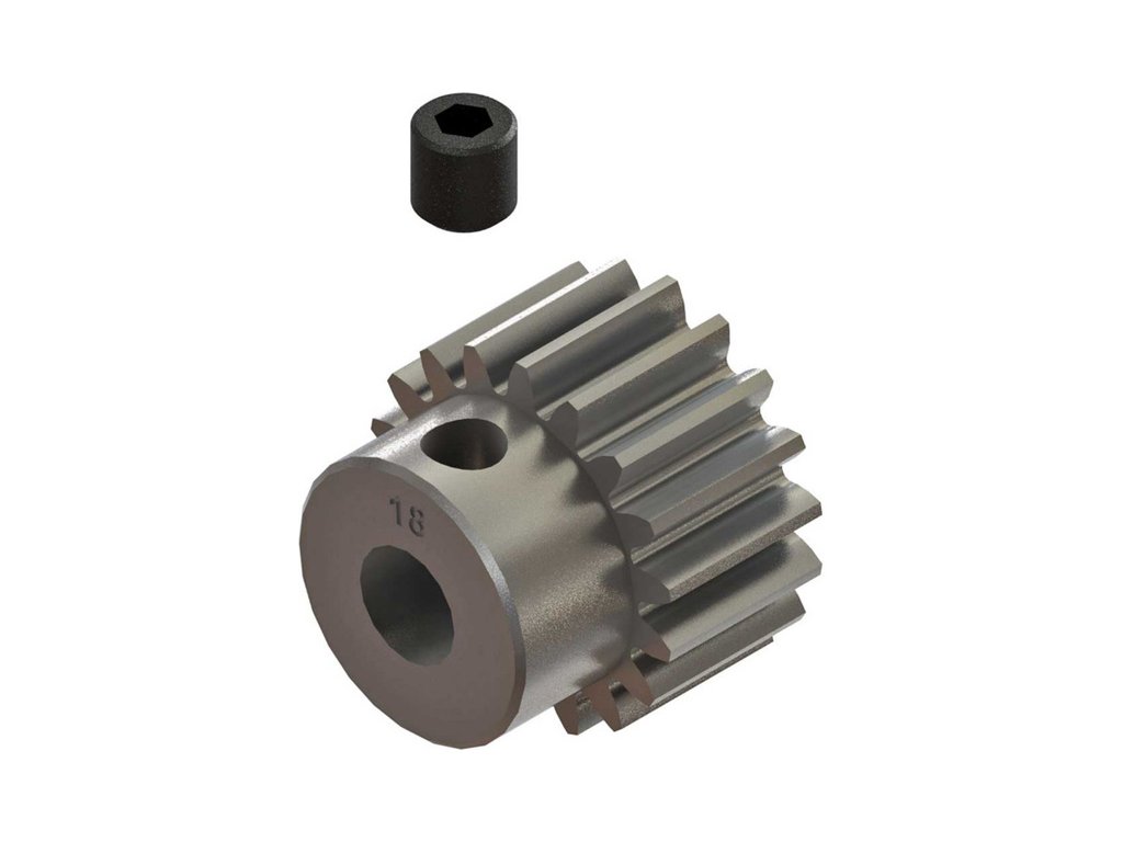 Arrma pastorek na hřídel 5mm s 18 zuby a modulem ozubení 32DP ( 0,8 mm ) pro RC modely aut. Vyrobeno z sintrované oceli. Součástí balení je červík.