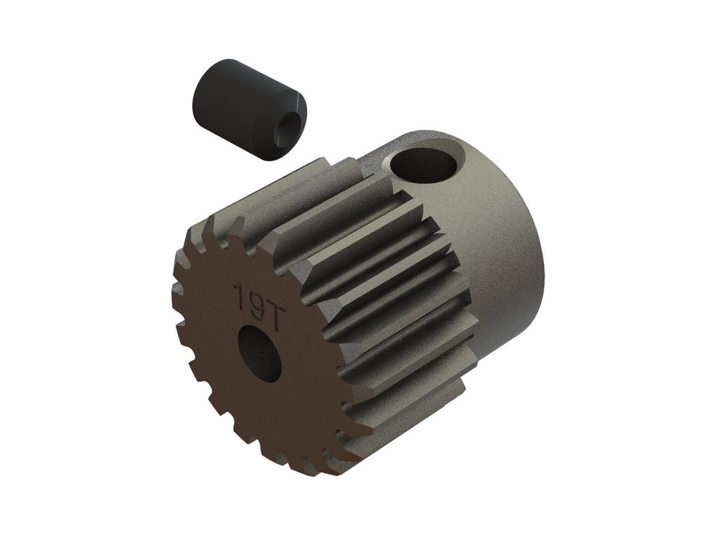 Arrma pastorek na hřídel 2.3 mm s 19 zuby a modulem ozubení 50.8DP (0,5 mm) pro RC modely aut. Vyrobeno z kalené oceli. CNC obráběný. Stavěcí šroub M3 x 4 mm.