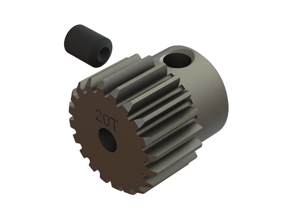 Arrma pastorek na hřídel 2.3 mm s 20 zuby a modulem ozubení 50.8DP (0,5 mm) pro RC modely aut. Vyrobeno z kalené oceli. CNC obráběný. Stavěcí šroub M3 x 4 mm.