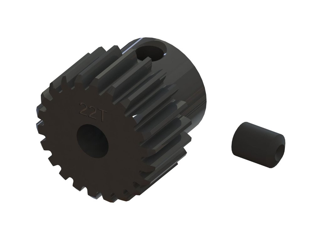 Arrma pastorek na hřídel 3.2 mm s 22 zuby a modulem ozubení 50.8DP (0,5 mm) pro RC modely aut. Vyrobeno z kalené oceli. CNC obráběný. Stavěcí šroub M3 x 4 mm.