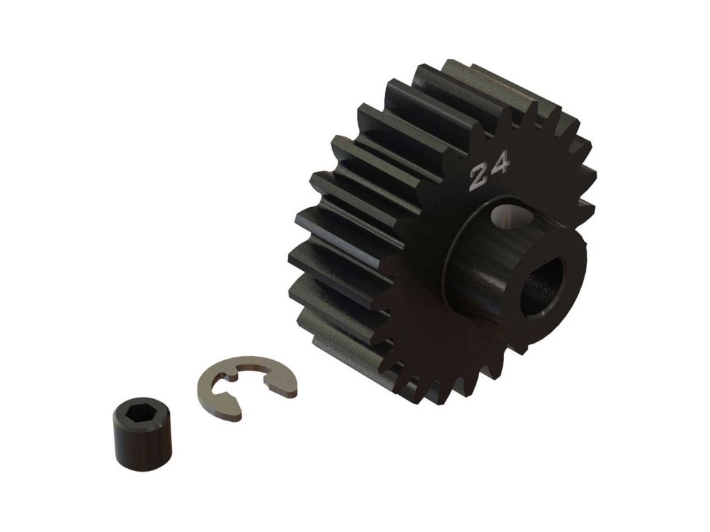 Arrma pastorek na hřídel 5 mm s 24 zuby a modulem ozubení 1 mm pro RC model auta Arrma Kraton 8S BLX. Vyrobeno z sintrované oceli. Součástí balení je červík.