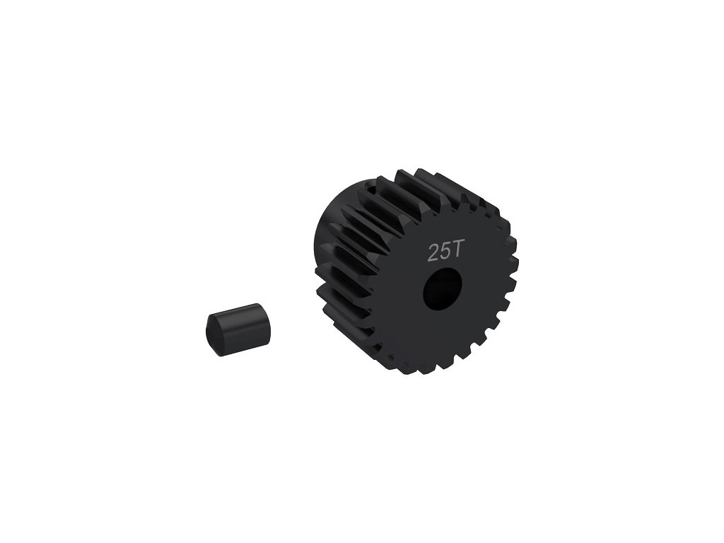Arrma pastorek na hřídel 3.2 mm s 25 zuby a modulem ozubení 50.8DP (0,5 mm) pro RC modely aut. Vyrobeno z kalené oceli. CNC obráběný. Stavěcí šroub M3 x 4 mm.