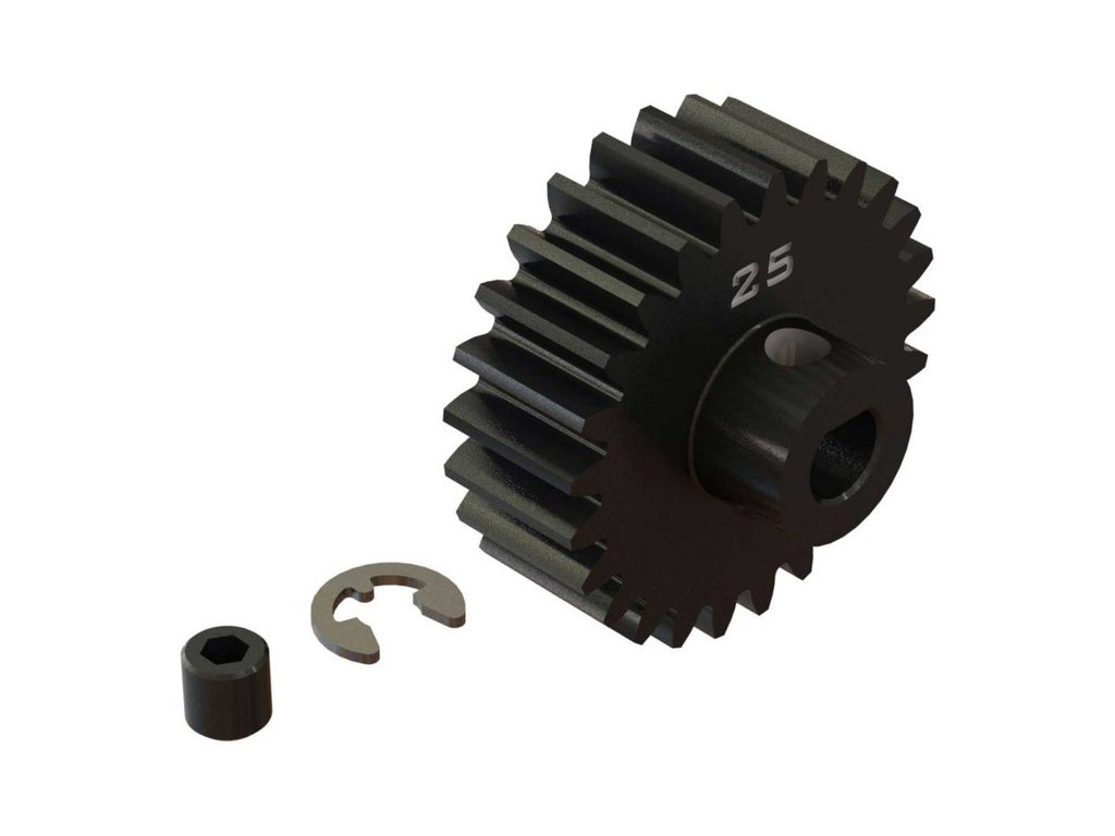 Arrma pastorek na hřídel 5 mm s 25 zuby a modulem ozubení 1 mm pro RC model auta Arrma Kraton 8S BLX. Vyrobeno z sintrované oceli. Součástí balení je červík.